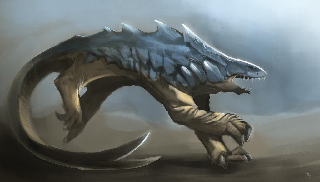 Quando in terra, sono creature terribili. Strano trovarli sulla terra ferma soprattutto perchè questo avviene solo in due precisi momenti: quando il tapu loro capo li richiama per cambiare il luogo che devono sorvegliare e quando un essere mortale ruba il loro tesoro e va quindi perseguitato. DIventano quindi colossi dalla pelle di scaglie, il volto ferale con una moltitudine di occhi uno dietro l’altro e una letale lingua velenosa. Alcuni hanno solo due arti anteriori con i quali si muovo ambulando come fossero grossi primati, altri invece definiti Taniwha maggiori posseggono più braccia tanto che ne esiste uno Olunui-Taniwha chiamato “Mille mani”. La parte inferiore del loro corpo è semplice e muscolosa, una breve coda quasi inutile sbatte contro due gambe corte e massicce. Alcuni usano armi dalla grande fattura, anche se ciò ha provocato solo lotte tra nani ed elfi per dichiarare quale delle due fazioni abbia realizzato armi tanto forti per questi guardiani.