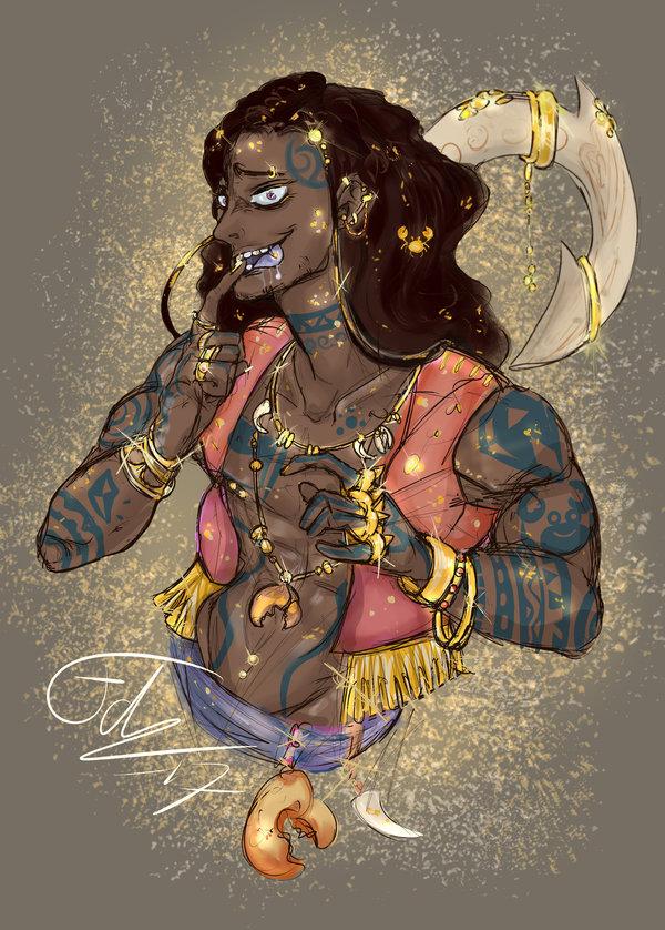 Spesso rappresentano come un grosso uomo con parte inferiore di crostaceo dalle sette zampe e due braccia lucenti totalmente ricoperto di oro e gioielli in grado di corrompere chiunque alla sola vista, perfino i tapu, usa come arma un semplice bastone in puro oro che termina con uno specchio nel quale si vede e si rivede in una maledetta vanità. A lui si associa ogni potere legato alla corruzione delle menti, alla tentazione per potere e ricchezza, lui è il possessore della ricetta per divenire immortali e dei, lui è colui che insegna che le grandi verità di Kanaka non son altro che menzogne e di esser stato lui a creare l’uomo portandolo nelle isole, lui era lo scultore delle specie, lui il padre di tutto.