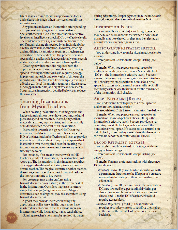 Parliamo delle Incantations ... sono più o meno gli Incantesimi Epici della 3.5 (non proprio così ma molto simili)