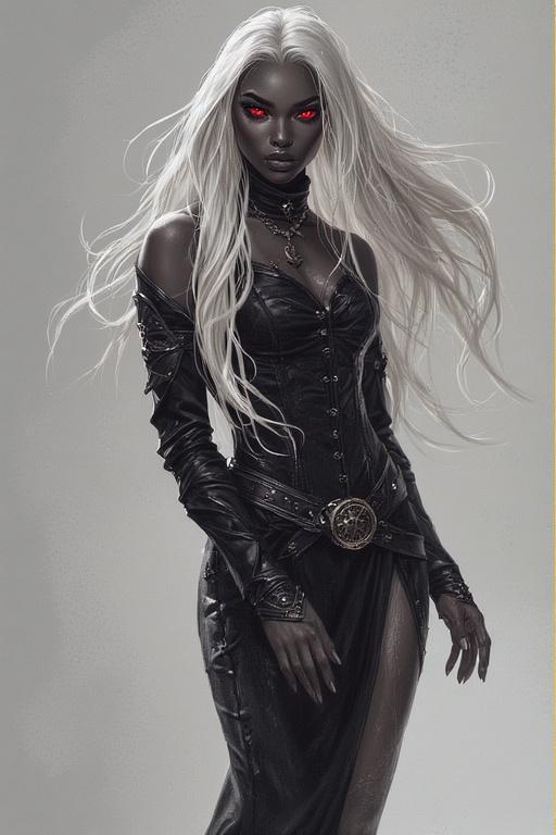 SELYRA VANYTH Razza: Elfo (Drow) Classe: Bardo/Ladro SCHEDA PG Selyra Velyndra è una drow alta e slanciata (1,75 m), dal fisico elegante ma allenato, con muscoli sottili e agili da acrobata. Ha la pelle d’ebano lucente e i capelli bianchi argentati, raccolti in elaborate acconciature da corte o sciolti in missione. I suoi occhi rosso cremisi brillano nell’oscurità, taglienti come lame. Indossa abiti neri e cremisi perfettamente tagliati, a metà tra vestiti nobili e abbigliamento da assassina: stivali alti, giacche lunghe con cinghie interne per armi, mantello corto per i movimenti rapidi. Si muove con una grazia teatrale, quasi danzando tra ombre e riflettori. Un tempo erede di una casata drow decaduta della Sottoscurità, Selyra è stata educata tra intrighi politici e spettacoli cortigiani. Quando la sua famiglia è stata distrutta da rivali, fuggì in superficie usando la sua bellezza e intelligenza per inserirsi tra nobiltà umana e criminalità. Ha viaggiato come barda itinerante, imparando a delinquere per sbarcare il lunario. La sua missione: ricostruire il potere perduto, infiltrandosi tra i potenti del mondo di sopra e tagliando la gola a chi serve. Dietro i sorrisi e i giochi di parole si nasconde una mente calcolatrice e spietata.