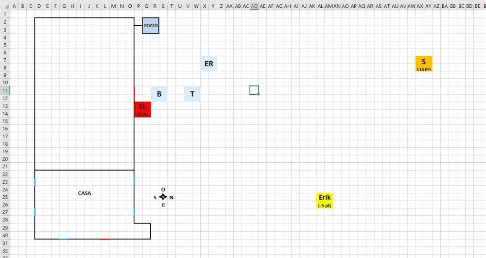 Fandango16 ha risposto a Fandango16 a un discussione Tuern - l'isola dei draghi in Tuern - L'isola dei draghiLa compagnia si scaglia con ferocia contro i due manigoldi, ma soltanto la druida con il suo arco riesce a ferire Erik con la sua freccia. Mentre questo lancia un urlo di dolore, S si divincola dalla presa di @Rafghost2 Eryn continua la sua fuga verso il bosco a nord. Erik invece si volta, sgancia il suo arco lungo dallo zaino e risponde a @shadyfighter07 Elyndra scagliando ben due frecce in rapida successione. "Muori stupida bambina! Sven, se dovessi morire oggi, occupati della mia famiglia!" Poi, mentre @shadyfighter07 Elyndra cade nuovamente a terra ferita mortalmente, si volta e si allontana da voi, in direzione nord/est. MECCANICHE E AGGIORNAMENTO MAPPA Sven, azione "Disingaggio" e poi movimento e azione bonus scatto. Ora è a 18 metri da Eryn. Erik, azione gratuita estrarre l'arma, azione attacco e poi movimento. Erik ha multiattacco e ho tirato 15 e 19 ai TxC. Ho tirato solo 8 danni con due frecce (2+2 e 2+2), quindi Elyndra è a zero, ma è ancora salvabile. Ha rischiato il danno massiccio: avendo ella 1 PF, se avessi tirato 11 danni sarebbe subentrata la morte istantanea! Ora decidete il da farsi, tocca a Eryn...tornerà a salvare sua sorella o darà la caccia alle sue prede? Riepilogo iniziativa: @Rafghost2 Eryn 1 (ultimo del turno), @Landar Thurin 16, @shadyfighter07 Elyndra 11, @Alzabuk Bàkban 9, Sven e Erik 9.