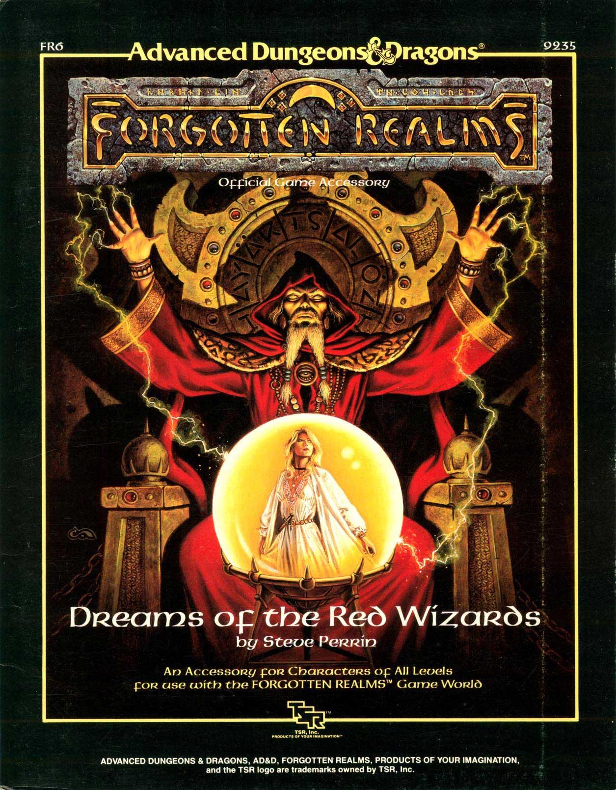 In un'epoca in cui i Forgotten Realms erano ancora un territorio vergine da esplorare, Steve Perrin prese gli appunti originali di Ed Greenwood su Thay e costruì qualcosa di più inquietante di un semplice regno malvagio. Creò una magiocrazia funzionante, con una burocrazia, un'economia basata sulla schiavitù, miniere d'oro che finanziavano esperimenti necromantici, e una classe dirigente dove l'omicidio politico era la norma per l'avanzamento di carriera. I Maghi Rossi non erano stregoni solitari nelle loro torri: erano un'élite organizzata, spietata, che governava un impero di un milione e mezzo di anime con metodi che avrebbero fatto impallidire i peggiori despoti della storia. Contesto della pubblicazione"Dreams of the Red Wizards" vide la luce nel novembre 1988, e rappresenta il sesto e ultimo supplemento "FR" dell'era AD&D prima edizione. Dietro la copertina dipinta a olio da Clyde Caldwell, raffigurante un Mago Rosso che osserva voyeuristicamente una donna, forse la Simbul di Aglarond, si celava il lavoro di Steve Perrin, designer leggendario meglio conosciuto come creatore di RuneQuest (1978) e autore di innumerevoli giochi per Chaosium. Perrin, che aveva già collaborato con la TSR per "Under Illefarn" (N5, 1987) e "The Magister" (FR4, 1988), ricevette da Ed Greenwood gli appunti originali su Thay e i Maghi Rossi, sviluppandoli in direzioni proprie. Un esempio paradigmatico della filosofia collaborativa della TSR: Greenwood aveva concepito la capitale Eltabbar come città "non mappabile", Perrin trasformò questo dettaglio in un plot geniale, rivelando che il tracciato urbanistico di Eltabbar è in realtà un glifo magico che imprigiona il principe demone Eltab, e mappare la città ne indebolisce i vincoli. Come nota lo storico Shannon Appelcline, questo dimostra come "i Forgotten Realms della TSR fossero opera di molte mani". Dal punto di vista editoriale, Dreams of the Red Wizards si presentava nel classico formato a cartellina dell’epoca, con prezzo intorno agli 8 dollari. La tiratura fu quella tipica dei moduli TSR. All’uscita fu accolto positivamente dai fan desiderosi di esplorare nuove frontiere: l’idea di un’intera nazione governata da perfidi arcimaghi aggiungeva una sfumatura più cupa ai Forgotten Realms. I Maghi Rossi di Thay diventarono presto antagonisti ricorrenti anche in altri prodotti: comparvero nei romanzi (ad esempio Red Magic, 1991) e nei videogiochi (un Mago Rosso è tra i villain di Curse of the Azure Bonds, 1989). FR6 gettò dunque le basi per uno degli elementi più iconici del Faerûn, base che sarebbe stata ampliata da supplementi successivi come il box set Spellbound (1995, dedicato a Thay, Rashemen e Aglarond). Contenuti del manualeAmbientazione e geografia: Gran parte del supplemento è dedicata a descrivere Thay, il reame orientale dei Maghi Rossi. Il territorio è un altopiano vulcanico circondato da confini insidiosi: a ovest Thesk (porta dei commerci) e Aglarond, a nord le brughiere di Rashemen, a sud l’impero di Mulhorand, a est una imponente catena mointuosa. La geografia è meticolosamente dettagliata: il Priador, altopiano agricolo lavorato da schiavi; il Thaymount vulcanico con miniere d'oro; il Lago Thaylambar abitato da tartarughe drago; le rovine di Delhumide, prima capitale distrutta da un demone; la Cittadella, fortezza antica con segrete inesplorate popolate da trogloditi e forse drow. Il "Lungo Trasbordo" è interamente gestito da zombie mantenuti dalla famiglia Tam da oltre un secolo, dettaglio macabro che riassume perfettamente l'approccio thayano alla forza lavoro. Thay viene dipinta come una terra feroce: fertili pianure e città sfarzose sorgono all’ombra di vulcani fumanti, punteggiate da mercati di schiavi e templi oscuri. Il governo è una rigida magocrazia retta da otto Zulkir (uno per ogni scuola di magia), arcimaghi che si spartiscono potere e province. Sotto di loro, una classe di maghi minori e funzionari tiene in pugno la società, mentre la maggioranza della popolazione vive in catene. Il manuale mostra bene come un intero paese possa essere malvagio: dall’élite crudele alla massa di schiavi terrorizzati, ogni livello sociale è corrotto o oppresso. Anche la religione riflette l’oppressione: i Maghi Rossi onorano gli dèi solo per facciata (affidandosi in realtà alla propria magia), mentre gli schiavi pregano Ilmater, dio dei martiri, sperando in sollievo. Il risultato è un quadro vivido di una nazione crudele, ricco di spunti da esplorare. FR6 abbonda di idee per avventure. Vengono introdotti PNG di primo piano, su tutti il lich Szass Tam, Zulkir della Necromanzia e mente dietro molti complotti, insieme ad altri arcimaghi e personaggi notevoli di Thay (governatori, mercanti, schiavi ribelli, ecc.). Si delineano anche le fazioni interne: i Maghi Rossi complottano costantemente gli uni contro gli altri, impegnati in faide e tradimenti continui per la supremazia. Sul fronte esterno, i vicini ostili non mancano: la Simbul, sovrana di Aglarond, spia ogni mossa di Thay pronta a intervenire, mentre le streghe di Rashemen respingono con ferocia ogni invasione. Intrighi politici, guerre striscianti e minacce soprannaturali sono all’ordine del giorno, e il tono generale è decisamente cupo. Il supplemento incoraggia campagne di cospirazione, esplorazione e orrore: spionaggio a corte, spedizioni tra rovine maledette, fino alle rivolte degli schiavi. Una sezione (Adventures in Thay) elenca vari spunti di trama, lasciando però al DM il compito di svilupparli. Invece di offrire una singola storia predefinita, FR6 propone un ventaglio di possibilità narrative aperte in un contesto “sandbox” malvagio. Oltre al materiale di ambientazione, Dreams of the Red Wizards include anche nuovi contenuti di gioco per AD&D. La sezione Magic of Thay presenta numerosi incantesimi inediti dal taglio oscuro, ad esempio Belten’s Burning Blood e Charm Undead, pensati per caratterizzare la magia dei Maghi Rossi. Troviam