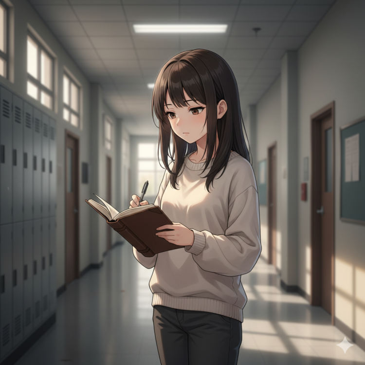 Nome: Caleb Vance Età: 18 anni (ripetente) Aspetto: Spalle larghe, portamento atletico e sorriso luminoso da pubblicità. Porta quasi sempre la giacca da football dei Thalos Titans e ha capelli castano chiaro leggermente disordinati. Gli occhi azzurri, spesso cerchiati da leggere occhiaie, contrastano con il suo atteggiamento solare. Ruolo scolastico: • Quarterback e volto della squadra dei Thalos Titans • Figura di riferimento informale per gli studenti più giovani Carattere pubblico: Caleb appare gentile, disponibile e sicuro di sé, sempre pronto ad aiutare senza chiedere nulla in cambio. È popolare, ma non arrogante, e sembra genuinamente interessato agli altri. A volte un po' ingenuo, cerca costantemente di essere all’altezza delle aspettative di tutti. Nome: June Park Età: 16 anni (ha saltato un anno) Aspetto: Capelli neri sempre raccolti in una coda precisa, grandi occhiali squadrati e felpe oversize piene di formule, piccoli robot o riferimenti scientifici. Si muove con compostezza, spesso con libri o tablet stretti al petto, e uno sguardo attento ma distante. Ruolo scolastico: • Miglior studentessa della scuola, ammessa direttamente al secondo anno • Membro di punta del club di matematica e del club di scacchi Carattere pubblico: June appare logica, lucida e imperturbabile, con un distacco che sfiora l’apatia. Osserva ogni cosa con calma analitica e una malinconia trattenuta. La sua brillantezza scolastica le dona un’aria di superiorità naturale, come se desse per scontato di capire più degli altri. Nome: Mia Holloway Età: 17 anni Aspetto: Capelli tinti di viola in sfumature irregolari, vestiti vintage presi nei negozi dell’usato e mani quasi sempre sporche di vernice o inchiostro. Ha un’aria sognante, spesso assorta nei propri pensieri, con schizzi e taccuini che la seguono ovunque. Ruolo scolastico: • Membro del club d’arte • Redattrice creativa del giornale scolastico Carattere pubblico: Mia appare introspettiva ed empatica, ma soggetta a bruschi cambiamenti d’umore. È gentile, anche se un po’ sfuggente, e parla davvero di sé solo attraverso la sua arte. Nei suoi disegni emerge qualcosa di più oscuro e misterioso, ma sempre in modo criptico e indecifrabile. Nome: Malcolm “Mack” Pierce Età: 17 anni Aspetto: Capelli rasati, lineamenti duri e sguardo penetrante che scruta più che osservare. Indossa una giacca militare logora e grossi stivali neri. Ha un modo di muoversi silenzioso, quasi predatorio, come se evitasse deliberatamente di attirare attenzione. Ruolo scolastico: • Lo studente taciturno che siede sempre in fondo all’aula • Nessuno sa davvero dove viva o cosa faccia dopo scuola Carattere pubblico: Mack è cupo, introverso e incline a un’intensità che mette a disagio. Non parla quasi mai, ma sembra conoscere segreti che non dovrebbe. Quando provocato diventa feroce, con un autocontrollo solo apparente. È una presenza misteriosa, evitata più per istinto che per giudizio. Nome: Felix Turner Età: 17 anni Aspetto: Capelli rossi sempre arruffati, occhi chiari e morbidi da cucciolo, cuffie consumate al collo e dita segnate dalle corde della chitarra. Veste in modo semplice, spesso con magliette di band, e ha un’aria perennemente assorta, come se stesse ascoltando musica invisibile. Ruolo scolastico: • Chitarrista della band del liceo, “The Ridgelights” • Figura discreta che evita eventi affollati Carattere pubblico: Felix è romantico, sensibile e con la testa tra le nuvole. Sembra un sognatore dall’animo fragile, spesso malinconico senza motivo apparente. È devoto alla musica, unica cosa che lo fa sentire davvero vivo, ma tiene le distanze dalle folle, troppo timorose per lui. Nome: Olivia Crawford Età: 17 anni Aspetto: Jeans chiari, maglioni morbidi dai colori pastello e un sorriso genuino che mette subito a proprio agio. Ha un’aria semplice e luminosa, capelli sempre in ordine e una postura rilassata. Si muove con naturalezza, come se non volesse mai attirare troppo l’attenzione. Ruolo scolastico: • Volontaria fissa della biblioteca scolastica • Libero della squadra di pallavolo Carattere pubblico: Olivia è gentile, disponibile e sinceramente premurosa. È la classica “ragazza della porta accanto”, sempre pronta ad aiutare e a incoraggiare gli altri. Pur essendo popolare, rimane alla mano e accessibile, con un modo di fare che la rende immediatamente simpatica a chiunque. Nome: Thalia Watanabe Età: 17 anni Aspetto: Corporatura minuta, abiti dai toni neutri e capelli castani lisci sempre ordinati. Cammina con passo leggero e sguardo basso, quasi invisibile nei corridoi. Il suo modo di muoversi è così discreto che ci si accorge di lei solo quando decide di esserci. Ruolo scolastico: • Presenza silenziosa che compare ovunque senza farsi notare • Frequentatrice abituale di biblioteca, corridoi vuoti e mensa Carattere pubblico: Thalia è quieta e acuta, osservatrice instancabile che preferisce ascoltare piuttosto che parlare. Registra tutto ciò che accade, prendendo appunti nel suo diario scrupolosamente aggiornato. Anche se pochi la notano davvero, sembra conoscere tutti meglio di quanto non facciano loro stessi. Nome: Evan Ross Età: 17 anni Aspetto: Jeans strappati, felpe pop colorate e un sorriso contagioso che illumina il corridoio. Ha capelli sempre un po’ spettinati e una gestualità vivace. Si muove con energia costante, come se cercasse sempre di tirare su il morale a chiunque incroci. Ruolo scolastico: • Clown della classe, sempre pronto a una battuta • Amico instancabile che non lascia mai nessuno da solo Carattere pubblico: Evan appare estroverso, dolce e irresistibilmente simpatico. È il tipo che fa ridere tutti, anche quando la situazione non lo richiede, ma dietro quella leggerezza si intuisce una nota più malinconica. Il suo umorismo sembra una maschera gentile che indossa per non far pesare a nessuno i suoi silenzi. Nome: Matías Arraya Età: 17 anni Aspetto: Pelle