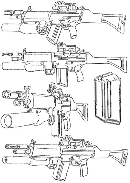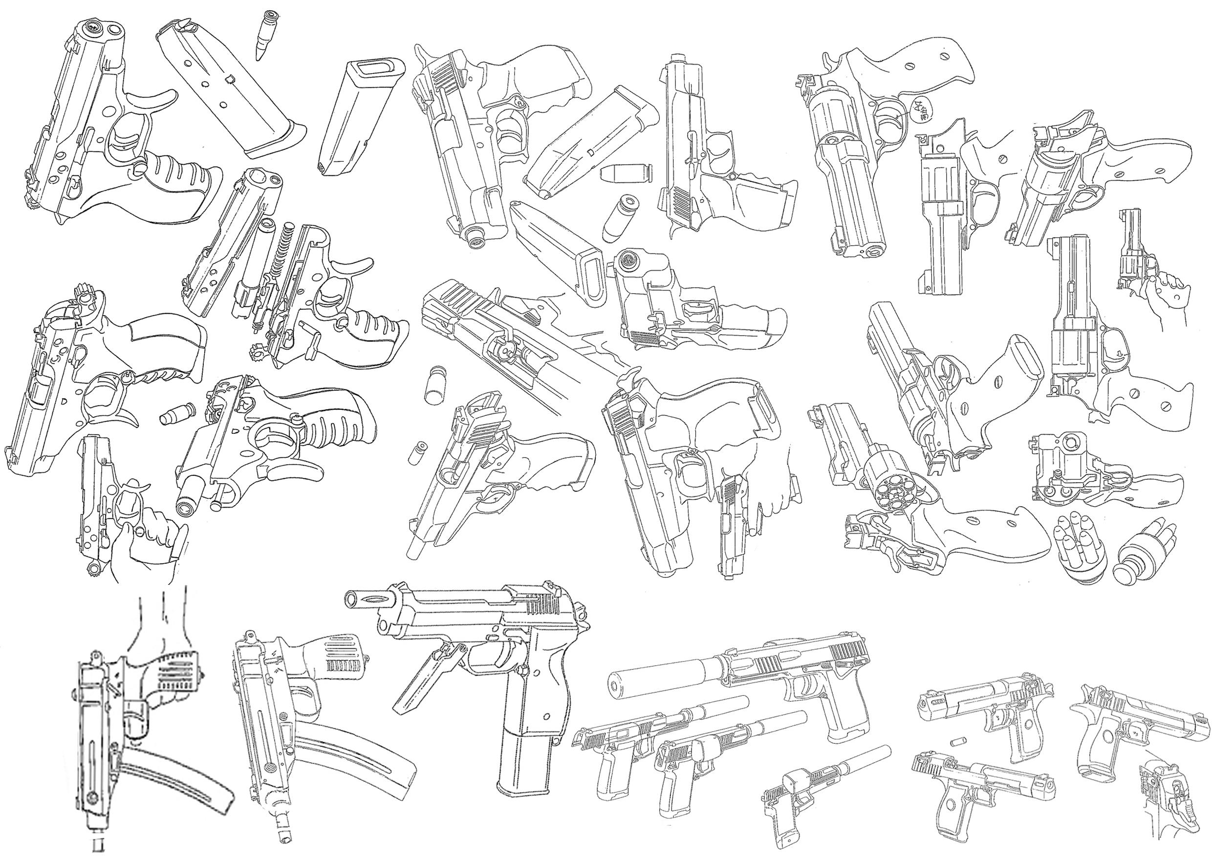 Poi ovviamente potresti avere "Confiscato Ai Criminali Arrestati" (o "Che Hanno Deciso Di Resistere Violentemente All'Arresto. . .!!") tutta una serie di Pistole Semiautomatiche (Leggere, Medie Pesanti), Machinepistols (in genere Leggere od Ultraleggere) e Revolvers (in genere Pesanti ed Ultrapesanti) che puoi lasciare sul posto (magari per incastrare la Gang di un Farabutto colpevole di Azioni Simili) in modalità "Usa-&-Getta" di tutto l'immaginario Cyberpunk (in particolare quelle di Ghost-In-The-Shell che sono sia Avveniristiche che Realistiche). . .!!