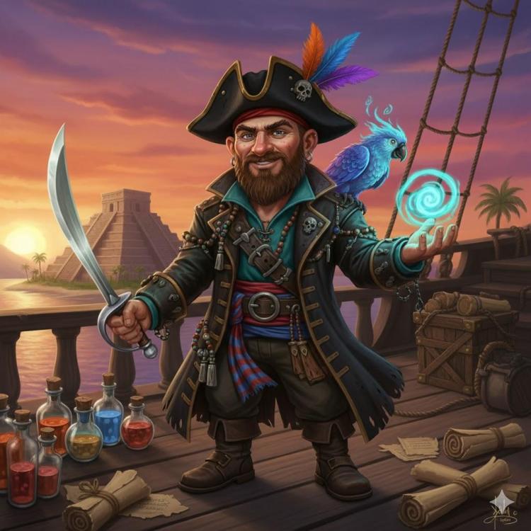 Ciao a tutti, visto che un'altra campagna a cui sto giocando è arenata da un pezzo e visto che questa a tema piratesco mi interessa, che tono avete pensato? Ho letto un po' la discussione, ma mi chiedevo se c'era spazio per un nano filubustiere d'assalto (barbaro della tempesta) oppure per uno gnomo voodoo con pappagallo spettrale al seguito! (guerriero 1/necromante X)! 😜 (immagini create con gemini)