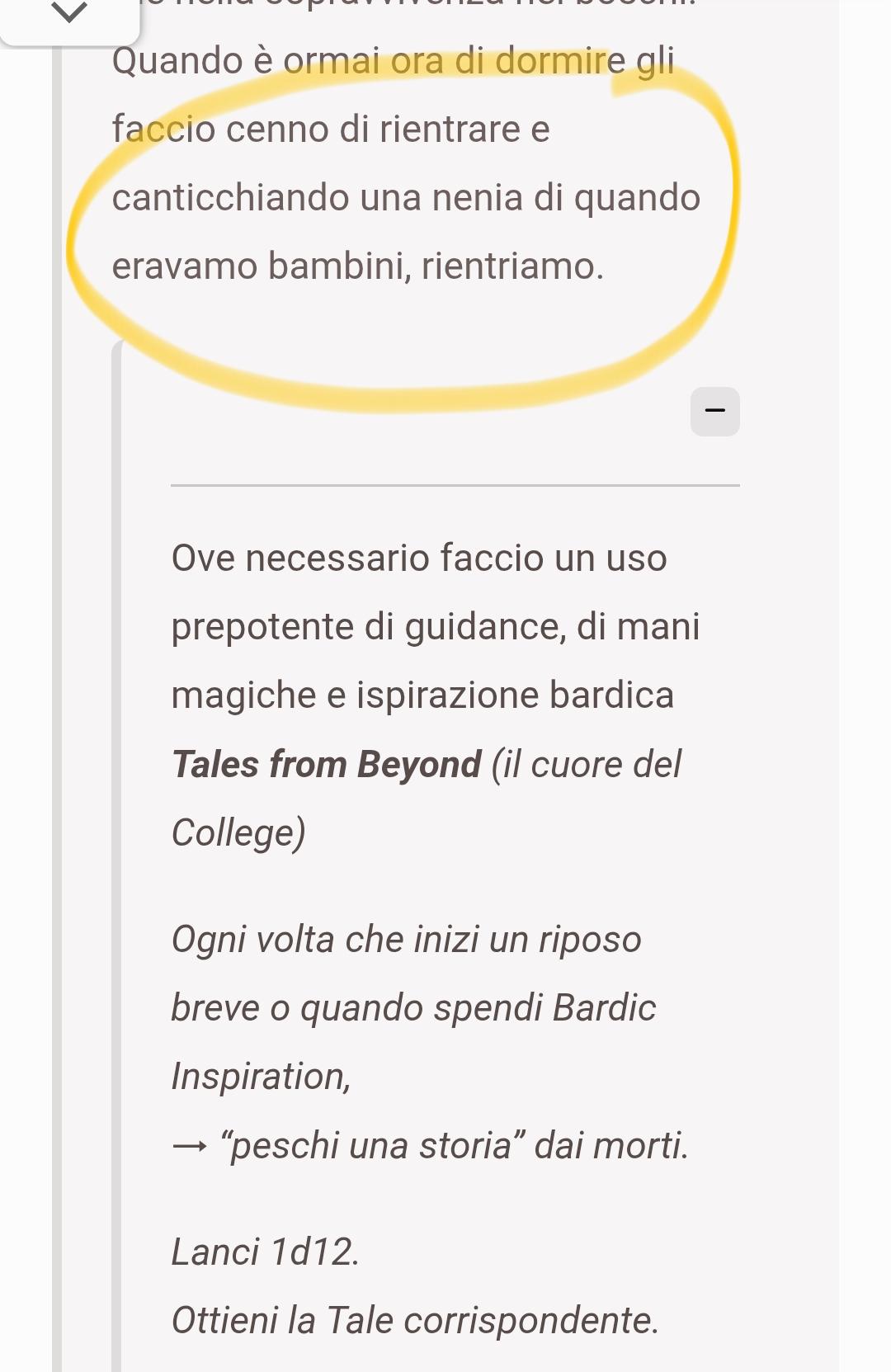 Una piccola sequenza di rune in nanico rivela qualcosa della mappa “Forgiata nel terzo anno della 187esima Assemblea da Dain Fogliamorta, esule, del clan dei Rossogranito, nella roccaforte di Rocca Smeraldo”. Anno più anno meno, questa mazza ha dunque circa un secolo, stando al calendario nanico I prigionieri guardano in cagnesco il goblin, nessuno di loro sa leggere, e di certo è praticamente impossibile che qualcuno di loro capisca cosa sia scritto nelle pergamene Mmm… sulla nostra parentela ci sarebbe molto da dire, rimaniamo che io sia la nonna e lei la mia dolce nipotina; l’immunità all’argento non è facile da ottenere… di certo non è qualcosa che posso fare senza vederti e analizzarti almeno una volta; per adesso lei saprà di certo darti qualche palliativo, ma temo che la sua efficacia si andrà riducendo nel tempo. Ricontattami tra una luna, vedremo cosa potrò dirti. Ah, vorrò sentire la mia nipotina, ovviamente, e mi auguro non le mancheranno pezzi