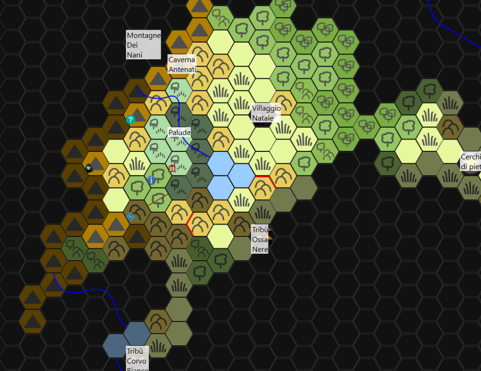 Anno 1272 - turno 3 - primavera Tabaxi Il primo gruppo di ricercatori ha fortuna, e proprio nei pressi della capitale si identifica una zona abbastanza vasta e fertile per installare una coltivazione di cereali (+2 PE); il secondo gruppo purtroppo non ha la stessa fortuna, o le stesse competenze, o un misto dei due, e così si ritrova solo con varie zolle di terra arata ma da cui non si riesce a produrre nulla Gabellieri e cambiamonete si affannano dietro i carri e i mercanti che importano dai Thar-Amur, i loro sforzi vengono ripagati con un incremento delle rendite doganali (+ 4 MO) Dragonidi La miniera viene completata in breve tempo, e già inizia ad estrarre il prezioso minerale; giovani Dragonidi accorrono da tutto il regno per la chiamata alle armi, molti sono più volenterosi che capaci, ma la rigida scrematura permette di costituire senza troppa fatica un'unità bene armata, ben equipaggiata e che potrà presto essere impiegata sul campo; i Goliath paiono molto entusiasti per i giochi e la possibilità di partecipare a quest'evento, la sola idea di poter affrontare, sebbene in un contesto amichevole, i discendenti dei draghi li ispira particolarmente Nani Le navi salpano per l'ennesima volta, ma stavolta le cose vanno ancora peggio del previsto: qualcosa le aggredisce, e quando rientrano in porto solo due delle dodici barche partite sono ancora integre, sebbene tutte presentino graffi e alberi spezzati. I marinai superstiti parlano di onde che sembravano inseguire le navi, cavalloni che si alzavano per ghermire i mariani, e una pioggia battente che pareva non abbandonarli mai. La delegazione inviata dai Goliath, invece, pare ottenere l'effetto peggiore: incomprensioni e parole dure si rincorrono, i delegati nanici sembrano parlare al vento, e ogni volta che i loro omologhi Goliath rispondono sembrano ritirare fuori vecchi rancori e vecchie problematiche di confini e passaggi, la delegazione torna a casa a malapena, ed anzi i cantori Goliath mettono bene in chiaro che non intendono accettare una nuova ambasceria a breve Queste notizie mettono in allarme tutta la popolazione nanica, al punto che la milizia richiesta dal governo viene reclutata in tempi ben più brevi di quanto ci si aspettava Umani Per quanto si provi e si riprovi, il clima del nord è troppo rigido e troppo selvaggio per gli ulivi, e i vari tentativi di piantarne falliscono uno dopo l'altro; si ha invece più fortuna col gesso, ed una possibile cava viene identificata con apprezzabile velocità. Allo stesso modo, i giovani del regno sono ben disposti ad arruolarsi, permettendo di creare in breve la milizia Durante un banchetto, uno strano uomo viene presentato a Ragnar; è alto, allampanato, magro e macilento, con indosso abiti scuri e cammina appoggiandosi ad un alto bastone, zoppicando in modo vistoso alla gamba destra. L'uomo ha una folta barba nera e grigia, e il suo occhio sinistro è coperto da una grossa benda rossiccia, ha addosso una quantità di teschi di corvi e altri uccelli, oltre ad amuleti di legno e feticci di pelo, che fanno allontanare da lui più di un guerriero Onorato re... mi scuso se sono giunto con così poco preavviso, ma vengo qui per proporti un'offerta che farà la felicità di entrambi. Conosco arti arcane, arti oscure che atterriscono il cuore di molti, arti che hanno a che far coi morti... io le posso mettere al tuo servizio, onorato sovrano, in cambio chiedo solo di sedere alla tua mensa, di scaldarmi al tuo fuoco, e nient'altro... Reami png Duergar Numerosi gruppi di minatori sono visti scavare e sciamare per le montagne del territorio Duergar, ma per quanto sia dato capire alle altre nazioni, non pare che le loro ricerche giungano a buon esito; sono invece fruttuosi i lavori per la creazione in un castello di una stalla, e più di un mercante o un viandante di altri luoghi ha iniziato a vedere grossi ragni venir condotti lì Hobgoblin Nuove unità di milizia vengono reclutare più o meno in tutti i loro villaggi
