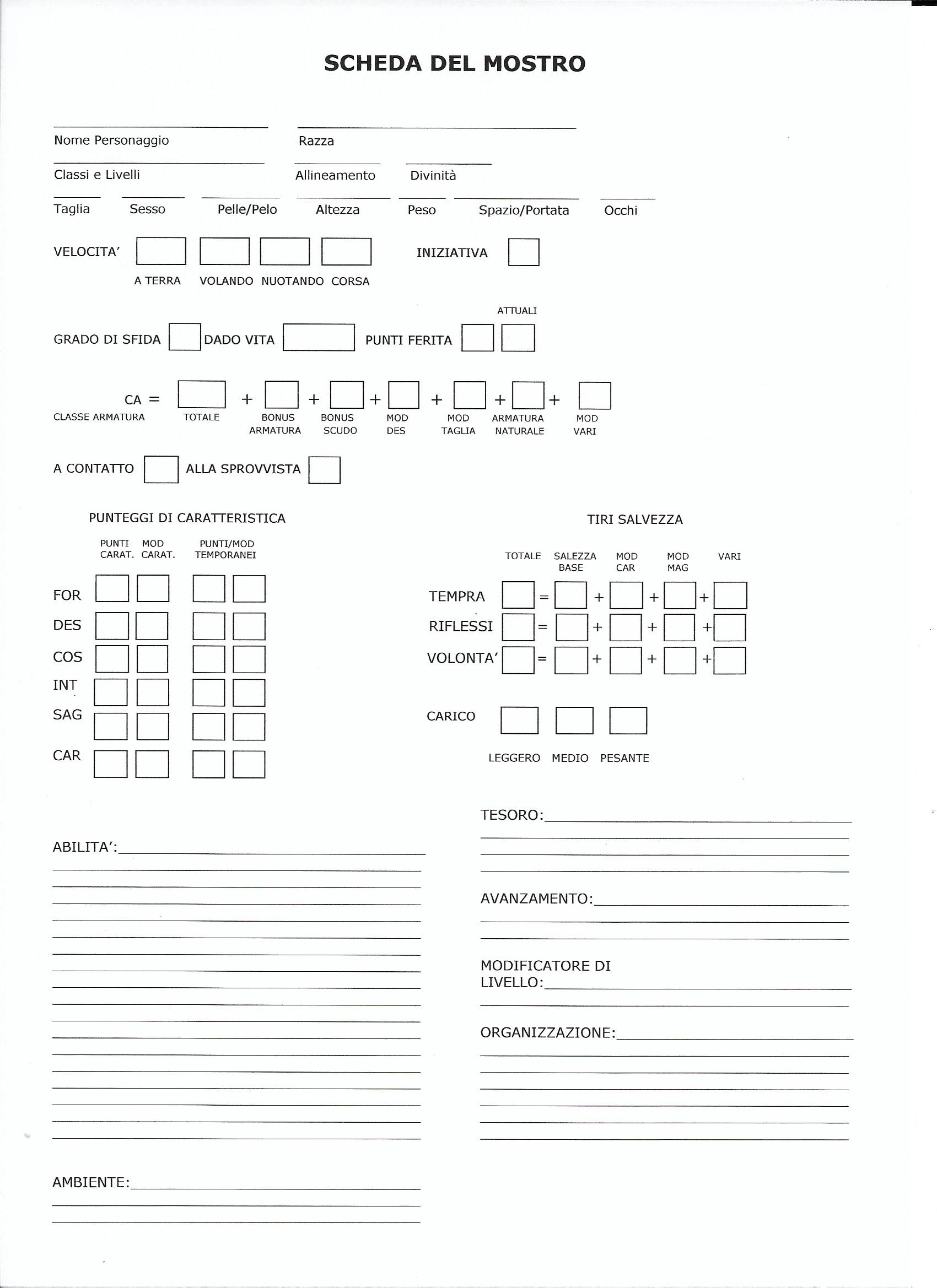Ciao, Non riuscendo a trovare una scheda per i mostri ne ho fatta una io. Spero che sia utile a qualcuno