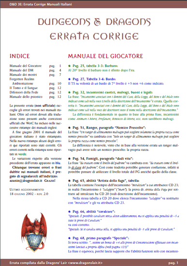 Questo file contiene gli errori trovati finora nei manuali italiani di D&D Manuale del Giocatore, Manuale del DM, Manuale dei Mostri, Forgotten Realms.