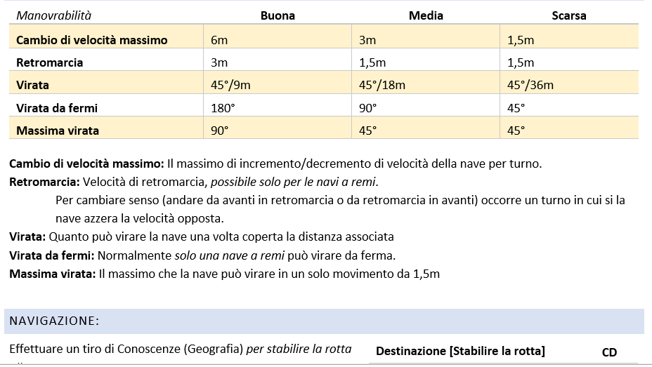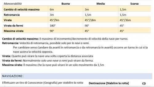 Ho usato principalmente lo Stormwrack con alcuni adattamenti. Ovviamente non prendete tutto come oro colato, tendo sempre ad aggiungere/togliere in base a modificatori di circostanza. Anche i ruoli a bordo della nave sono variabili, ma vi serve per capire più o meno come ho intenzione di giocare in mare.
