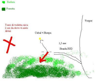 11 Giugno 200916 anni Autore comment_335687 @Dede Spoiler: L0ggetto sarà pronto fra 3 giorni. lasci metà dei soldi come anticipo. questi sono gli oggetti identificati dallo stregone 3 arco corto +1 potenziamento +2 2 arco corto +2 potenziamento +4 5 pietre Scurovisione 12 round al giorno swift no slot 3 randello da guerra +2 2 spada corta +1 1 Spada corta +3 1 spilla invisibilità a parola di comando 3 cariche 10 round per carica 4 mantelli +2 TS 1 anello Eludere 1 armatura di pelle di rettile +4, +10 nascondersi, +10 muoversi silenzioso, +10 scalare Arrivate tutti puntuali all'appuntamento. Vedete Cabal e Sherpa parlare animatamente mentre si avvicinano. La seconda non ha una bella cera, sembra che la notte prima abbia continuato a bere e a divertirsi con Frank. Cabal, visto che è di strada dice, vuole aiutare una brava donna del quartiere. Il marito e il figlio maggiore non sono ancora rientrati dalla caccia. Dopo essere montati sui cavalli vi avviate verso la strada sud di vesper ed uscite dalla città. Dopo meno di due ore di cammino su una strada ben tenuta e decidete di separarvi, per ritrovarvi dopo una breve ricerca alla torre più avanti. Cabal e Sherpa vanno a nord voi tre andate a Sud. Iniziate a percorrere la radura per circa un oretta, Sherpa vi aveva detto che avreste trovato un boschetto dove in genere ci sono molti cervi, fra cui anche cervi bianchi. Spoiler: Da dove vi siete separati alla torre sono circa 2 ore, l'appuntamento è per l'imbrunire, sono le 16 e avete a disposizione circa 3-4 ore prima che il sole inizi a tramontare. Ho fatto le dovute prove e Jeralis e Mazelus trovano delle tracce di cervi e di vari uomini, alcune particolarmente pesanti. Tutte queste tracce portano dentro la foresta. Per entrare "imboscati" dovete usare nascondervi e muoversi silenz. per salire sugli alberi scalare. Segnala