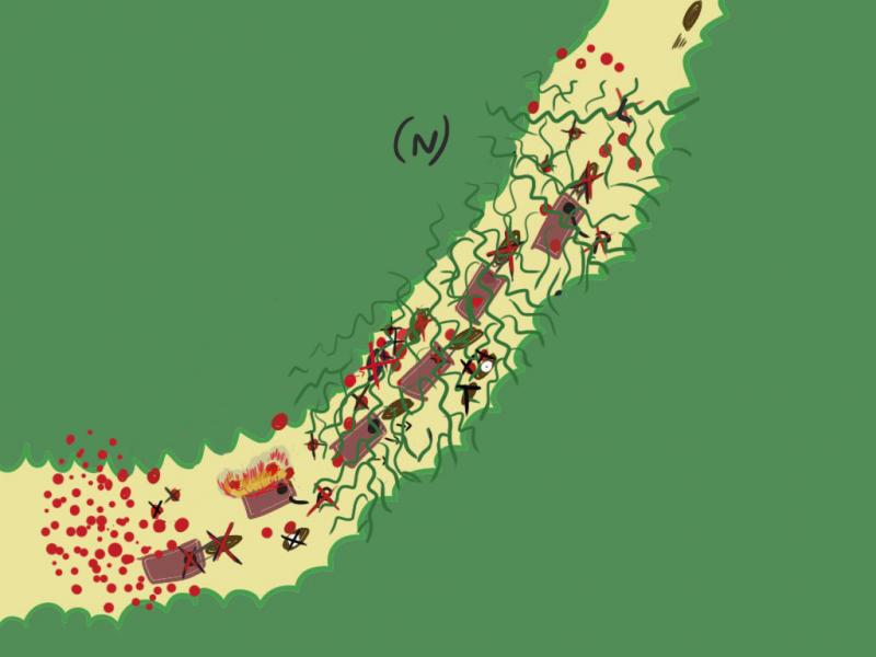 8 Luglio 201015 anni Autore comment_493155 @ Niphlo Spoiler: Ormai sei l'unico a vedere chiaramente cosa succede: i membri della carovana sono intrappolati dai rampicanti, fuggiti o morti. Il carro in fiamme genera una nuvola di fumo nero, ma non ci vorrà molto perché si spenga. Gli orchi stanno caricandosi addosso il possibile e già alcuni, trascinando il cavallo, si infilano tra le piante dall'altra parte della strada, urlando e richiamando gli altri; pochi si sforzano di liberare i "compagni" intrappolati. Segnala