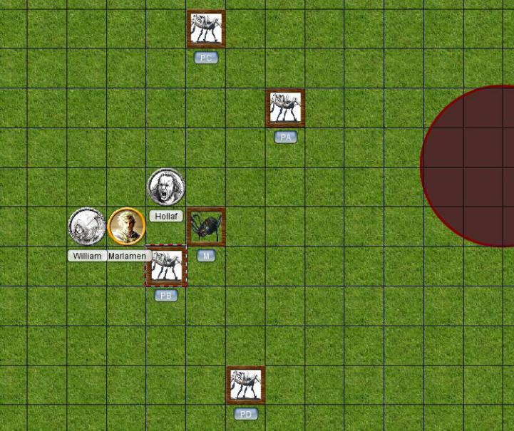 2 Ottobre 201114 anni Autore comment_647060 Vi avvicinate alla grossa quercia i cui rami si estendono per diversi metri creando una grande zona d'ombra.. Ora che riducete le distanze notate quanto grandi sono gli squarci e cavità formatesi nel tronco, ormai probabilmente morto da tempo.. Siete ormai sotto le sue fronde quando qualcosa attira la vostra attenzione ai piedi di esso, sembra essere qualcuno accovacciato, no.. sdraiato.. immobile.. Pochi passi ancora e riconoscete il corpo defunto e ormai in decomposizione di una persona sul quale mosche e altri insetti stanno banchettando. Non avete però il tempo di avvicinarvi oltre, che un'ombra sopra la testa di William prende a calare rapidamente su di esso proprio mentre se ne rende conto. Anche l'occhio di Hollaf non si lascia sfuggire quella ch'è chiaramente una minaccia pronta ad attaccare, mentre Marlamen riesce a rendersene conto solo qualche secondo dopo vedendo la pronta reazione dei suoi due compagni. L'ombra che si fa sempre più grande nella sua caduta, o meglio discesa, ha comunque guadagnato un certo vantaggio, e riesce ad atterrare sopra l'arciere con le sue 8 zampe, e quindi mordere con la sua bocca sbavante... E' ormai chiaro, un grosso ragno è in cerca di un'altro pasto. Ormai tutti consci della minaccia, non fate fatica a notare altri 4 ragni, seppur più piccoli, calarsi dai rami dell'albero fino a toccare terra, e con intenzioni tutt'altro che amichevoli. Tutti Spoiler: Tiri Spoiler: Osservare: Hollaf 20naturale, Marlamen 19(16+3), William 20naturale Solo Hollaf e William vedono il ragno. I turno (turno di sorpresa: M, Hollaf, William) M vs William, 20naturale, 1 danno Tempra William 19(17+2), salvo Iniziativa Spoiler: M 18 PA14 Marlamen 12 PB 11 William 6(3+3) PC 6 PD 6 Hollaf 3(2+1) Questo è il round di sorpresa, sta solo a William e Hollaf. Mappa Spoiler: Segnala