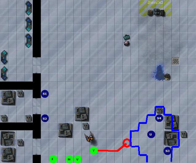 7 Giugno 201114 anni comment_607554 Dannazione devo eliminarli in fretta e permettere agli altri di usare il carico come riparo. Mi sposto con la spada laser in mano e cerco di abbattere S2 restando in copertura dei carichi in modo che i soldati dal lato destro non possano vedermi. Spoiler: Stando alla mappa posso arrivare fino a S2 mettendomi in diagonale e visto che siamo in spazio aperto cerco di colpirlo. Stando a quello che vedo dovrei ottenere copertura dall'ufficiale e i suoi uomini grazie ai vari carichi che coprono la visuale di tiro...S1 invece mi vede perfettamente, se mi spara tento di deflettere i colpi. Segnala
