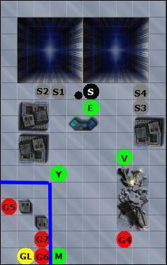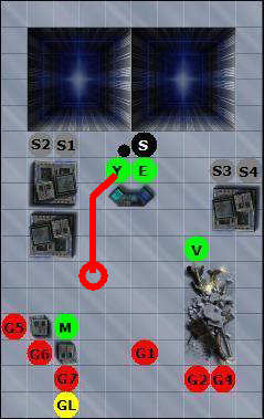 26 Maggio 201114 anni Autore comment_603393 @Dadi: Spoiler: Valance vs G1, 14 vs 10 - colpito! danni, 3d6 = 11 - morto! Eghon vs G2, 15 vs 10 - colpito! danni, 3d8 = 16 - morto! I colpi di blaster di Eghon e Valance sono irresistibili ed abbattono le guardie nemiche con precisione. @Mappa: Spoiler: @Iniziativa: Spoiler: S2 25 V 23 Y 22 E 22 M 19 G6 19 S1 16 S3 14 S 13 G7 11 G4 10 G5 10 S4 8 G3 7 GL 2 Turno di Mical Segnala