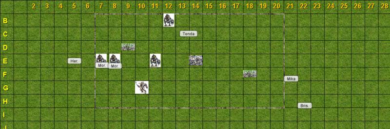9 Settembre 201114 anni comment_637429 ROUND 3 Mika Fireforce Temo che Demetrio abbia sbagliato strategia! Bisogna fare alla svelta! Il tempo non gioca a nostro favore! Bristol, appena cade l'hobgoblin richiama il tuo incantesimo e ce la giochiamo alla vecchia maniera! Mi avvicino all'hobgoblin vedendo bene di non rimanere intrappolato nell'incantesimo di bristol! Spoiler: Mi muovo verso l'hobgoblin rimanendo fuori dal raggio azione dell'incantesimo intralciare. Heriòv E' scoppiata una battaglia intorno a noi! Qui non si tratta di truppe esploratrici questo è un esercito vero e proprio! Perchè diavolo Demetrio ci ha diviso in gruppi allora? Se la situazione diventa complicata suonerò il corno! Lancio il coltello contro l'Hobgoblin ancora intralciato. Spoiler: - Azione standard: [pugnale da lancio bonus d'attacco totale +2 | danni 1d4+1 +1d6 attacco furtivo] attacco a distanza con il mio pugnale contro l'hobgoblin intrappolato in G10. E' lontano esattamente 6 metri quindi ho un bonus di solo +2 (+4 bonus d'attacco -2 incr. gittata) Essendo ancora intrappolato non può disporre del bonus destrezza quindi al mio attacco si somma ancora 1d6 di attacco furtivo. - Movimento: estraggo lo stocco. questo mi permette di essere armato con entrambe le mani. Segnala