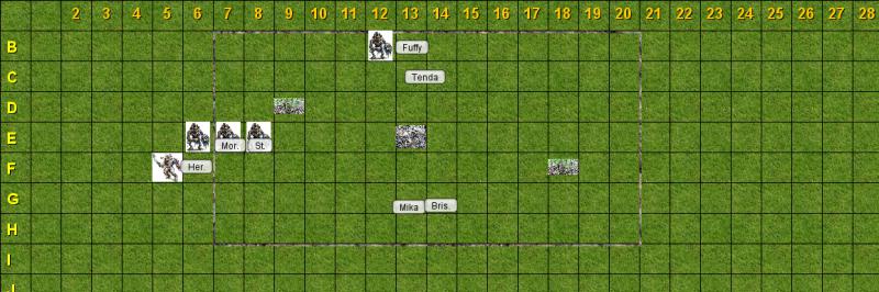 9 Settembre 201114 anni Autore comment_637377 L'aquila sferra l'attacco ma il suo artiglio cozza contro l'armatura dell'hobgoblin, non infliggendo nessun danno. I goblin morenti rimangono a sanguinare, il loro corpo non riesce a fermare l'emorragia. Gli altri, assieme all'hobgoblin, rimangono tutti intralciati, compreso quello che si era riuscito prima a liberare. L'aquila di Bristol scompare. Spoiler: Le coordinate sono cambiate, prendete queste. I goblin in E7 e in E8 sono morenti, mentre quelli in B12, E11 e l'hobgoblin in G10 sono intralciati. Nessuno di voi è intralciato. Tocca a Mika Fireforce. Cominciate a sentire dei rumori provenire sia dal punto da dove sono venuti i goblin sia da dove siete venuti voi. E' il rumore di una guerra che imperversa, urla umane e di altro genere si sentono nell'aria. Il rumore di spade che cozzano contro armature e scudi si fa subito sentire, assieme alle urla strazianti di coloro che stanno morendo. Segnala