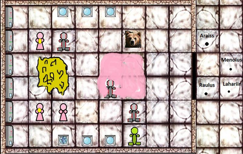 24 Novembre 201113 anni comment_665395 "adefoss akuda" roteando le mani a descrivere un cerchio per poi indicare con entrambe le dita unite un punto dietro al nemico Spoiler: lancio sulla difensiva evoca alleato naturale 2 in difensiva in 6da sinistra 2 dall'alto, un orso nero concentrazione +10 cd 17 che attacca subito, 2 artigli +6 (1d4+4) e 1 morso +1(1d6+2) piu i bonus al tiro per colpire per fiancheggiamento e per ispirare coraggio, totale artiglio +9 (1d4+5), morso +4 (1d6+3) "Attacca fedele amico" (in orchesco) per poi fare uno scatto dietro il muro Spoiler: az. gratuita passo di 1,5m a lato verso l'alto Segnala