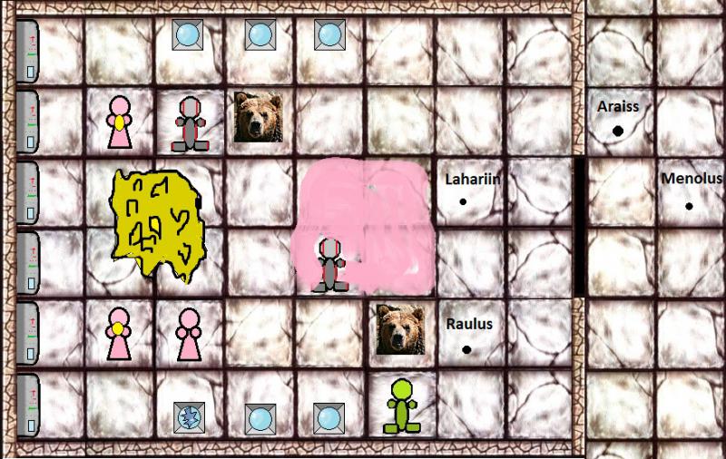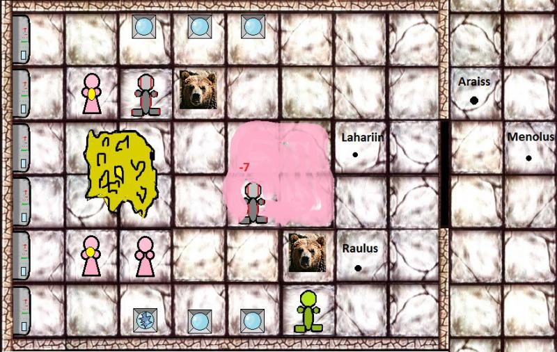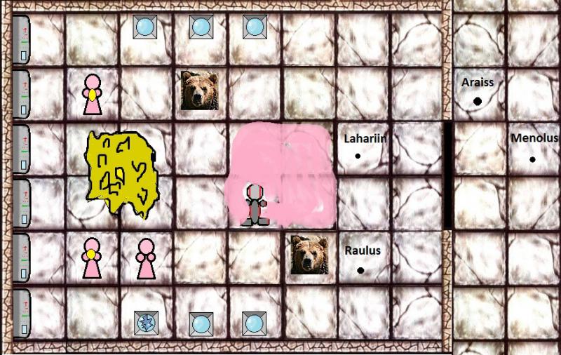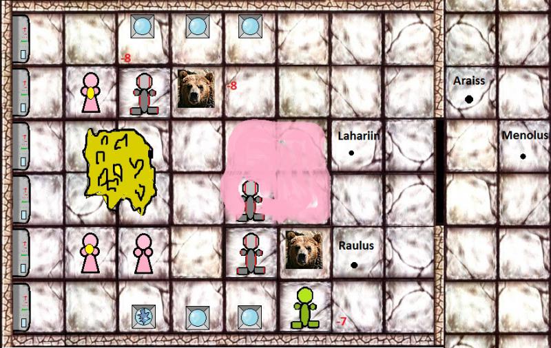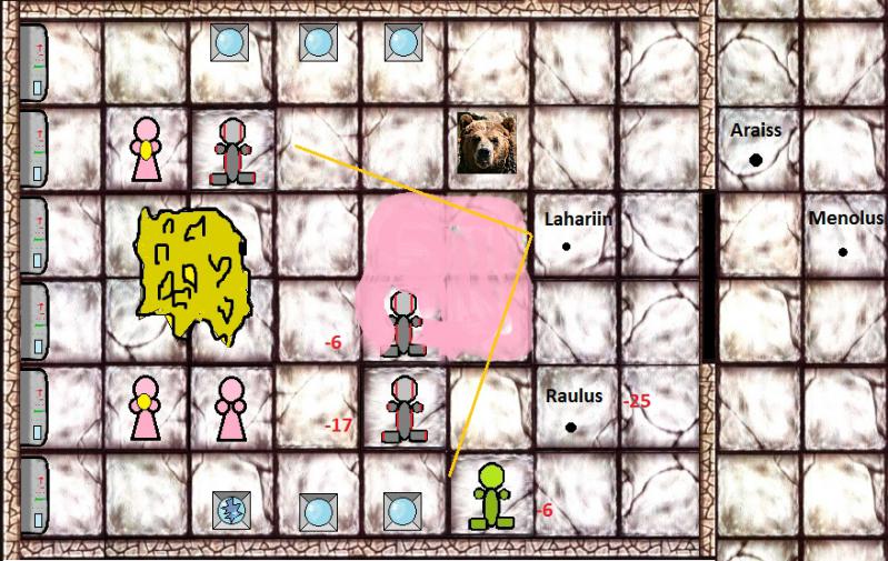 28 Novembre 201113 anni comment_666684 facendo un passo a fianco a Menolus, lancio un incantesimo "adefoss akuda" roteando le mani a descrivere un cerchio per poi indicare con entrambe le dita unite un punto dietro al nemico Spoiler: evoco un altro orso fra i 2 neri (quello nell'unto e quello no vicino al verde) e attacca subito 2 artigli +6 (1d4+4) 1 morso +1(1d6+2) qualora fiancheggiasse con qualcuno etc conta tu Spoiler: l'orso1 avanza fino al tipo nero gli fa un singolo attacco artiglio +5 (+6 base,+1canto, -2intralciato) [1d4+4] CA 11 Segnala