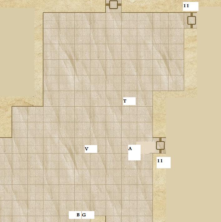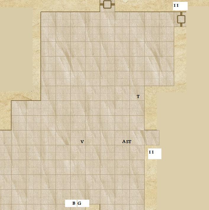 14 Aprile 201213 anni Autore comment_710223 X Tutti Spoiler: Ora è importante mi diciate dove siete su questa mappa, al momento del tentativo di rottura della porta da parte di Arkan. Ditemi quanti metri a nord, sud o ovest rispetto a lui. Ricordo che un quadretto piccolo è 1.5 metri, uno grande 3 metri. Quando tutti avrete postato le posizioni, aggiornerò la mappa e si darà il via alle danze. Segnala