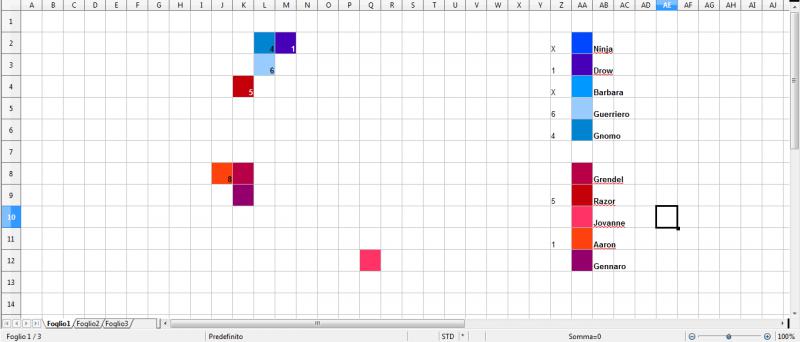 15 Marzo 201213 anni Autore comment_701236 Grendel parte in carica contro il guerriero che si stava preoccupando di Razor e aveva quindi il fianco scoperto, il colosso, colpito duramente alle costole ne risente pesantemente del colpo tanto da accasciarsi a terra senza piu' muoversi. Spoiler: Charnel touch txc 7+3+2(carica)=12 _colpito(contato)_ danni 8+1=9 Il piccolo gnomo salta subito sul compagno con le mani gia' splendenti di una candida luce bianca pronto per curarlo. Spoiler: CFL 1d8+1 2+1=3 niziativa: Jovanne Aaron (1) Gennaro Drow (1) Guerriero (12) Ninja (20(-12)) -fuori- Grendel Gnomo (4) Razor (5) <== tuo turno Bionda (30(-15)) -fuori- Edit: nel prossimo post ditemi con che colore volete essere segnati nella mappa del prossimo combattimento, un colore diverso a ogniuno per distinguervi meglio visto che non si vedono bene cosi' Segnala