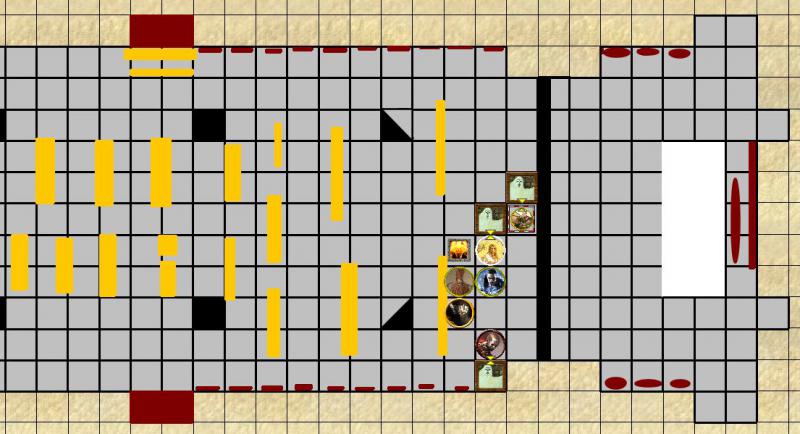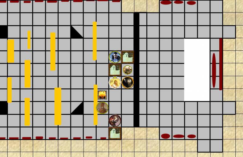 21 Settembre 201213 anni Autore comment_764929 Guardando dietro il cancello, vedete alcune sedie di legno accanto ai muri, un grande rialzamento di marmo che funge da tavolo, adornato con una specie di tovaglia rosso sangue e con sopra alcuni oggetti, ma da quella distanza non capite molto. Una cosa che invece riuscite a vedere benissimo è il grande quadro dietro di esso. Raffigura una qualche testa di qualche strana ed abominevole bestia. Aveva il viso quasi umano, ma rosso, dei canini molto appuntiti, orbite nere e vuote, ed una coppia di corna che si diramano sia all'insù che all'ingiù. Ricorda vagamente il sigillo della pergamena ritrovata nella locanda e che Iankev ha nello zaino. Ehi, guardate, anche nei quadri mi sembra che ci sia quel simbolo, guardate!- Fa Annalisa. Ed effettivamente in un angolo di tutti i quadri c'è quel simbolo, e notate anche che alcuni di loro, indossano una toga più appariscente, con colletto, cinta, e mantello, però non conoscete nessuno di loro. Iankev è molto attento nella visione dei quadri. Bè, sono così dettagliati che sembrano essere reali, si rimane affascinati. Sono così....REALI! All'improvviso l'immagine del quadro, un uomo anziano con una di quelle toghe appariscenti, capelli bianchi a caschetto e benda sull'occhio sinistro esce dal suo quadro, creando un suo duplicato verde. Afferra Iankev, e cerca di infilare la sua mano verde all'altezza del suo cuore, ma il guerriero è reattivo e rimedia solo una ferita di striscio al braccio. Bombur vede accanto a sè Annalisa, che trema, ma non di paura. Un altro di quei fantasmi, vestito con una toga come quelle trovate da voi, stringe la testa di Annalisa, che inizia a diventare sempre più pallida. Stessa sorte tocca purtroppo anche a Coscienza, stretto nella loro morsa. Mappa Spoiler: Fantasma che tiene Annalisa = Fantasma A. Fantasma che tiene Coscienza = Fantasma C. Fantasma che tiene Iankev= Fantasma I Coscienza, Annalisa e Iankev sono in lotta coi fantasmi. (E non chiedetemi come dei fantasmi possano andare in lotta ) P.S. A quanto pare siete molto perspicaci. Iniziativa Spoiler: Coscienza <---- Iankev Nim Ichabod Bombur Coscienza Spoiler: Subisci 2 danni alla forza. Iankev Spoiler: Subisci 1 danno alla forza. Segnala