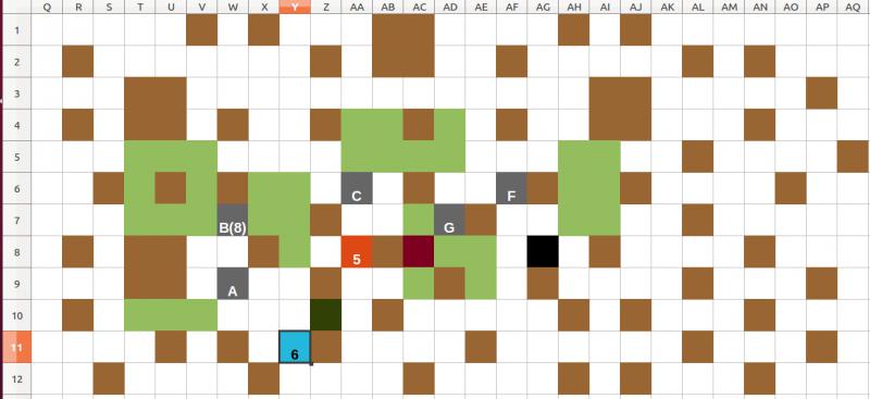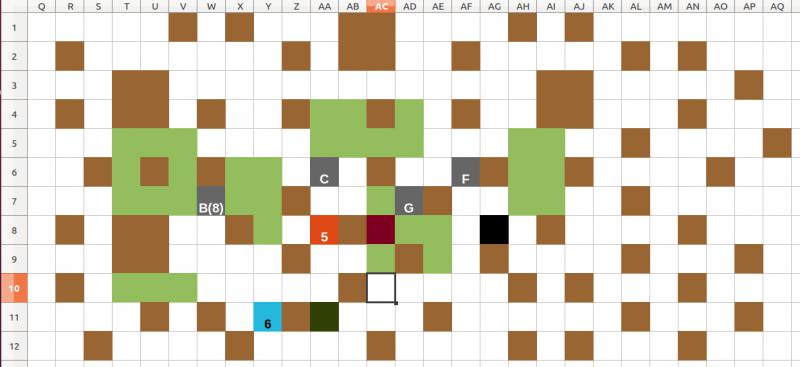 24 Gennaio 201312 anni Autore comment_804599 Xardoval tenta inizia ad aggirare i nemici passando per la fitta boscaglia mentre altri 3 orchi nemici avanzano sulla scia del primo assalitore. Il primo orco imita il vostro compagno dando inizio ad una manovra di accerchiamento mentre gli altri due preferiscono lo scontro diretto andando andando ad affrontare Xardoval e Kortz. Quest'ultimo devia all'esterno della sua guardia l'affondo di lancia utilizzando il braccio metallico mentre l'umano si limita ad evitare il colpo schivandolo. Mappa Spoiler: Marrone= tronchi delle piante Verde=cespugli bassi (terreno impervio) Arancio= Jarvis Verde scuro= Ember Nero= Kortz Rosso= Xardoval Celeste= Shep Grigi= Orchi Iniziativa Spoiler: Kortz Orco C Xardoval Orco D/F/A Ember <== Tuo turno Shep Orco G Jarvis (5) Orco E/B Quelli tra parentesi sono i danni! Rulez Spoiler: Orco D contro Xardovall TxC 4+4=8 mancato Orco F contro Kortz TxC 6+4=10 mancato Segnala