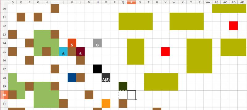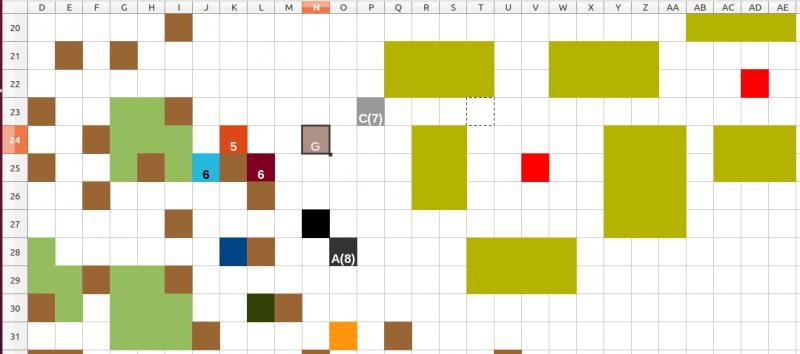 2 Febbraio 201312 anni Autore comment_808449 Ember si muove veloce sul campo di battaglia aggirando un nemico e scoccando una freccia sull'orco appena ferito da Xardoval. L'orco sta urlando a squarciagola inveendo contro il cielo uqndo una freccia lo colpisce al volto portandogli via tutta la masciella, questa si stacca producendo 3-4 distindi crack che risuonano al di sopra dei rumori della battaglia e cade a terra a pochi passi dall'orco. Questo, perdendo i senzi dal dolore cade a terra mentre il suo sangue colora il campo di battaglia creando un vero e propio lago intorno al suo corpo. Mappa Spoiler: Marrone= tronchi delle piante Verde=cespugli bassi (terreno impervio) Verdastro chiaro= Tende Rosso chiaro= falò/fuoco Arancio= Jarvis Verde scuro= Ember Nero= Kortz Rosso= Xardoval Celeste= Shep Giallo= Karon Blu= alleato Grigi= Orchi con lancia Grigi scuri= Orchi con falchion Iniziativa Spoiler: Karon Xardoval (6) Orco G Ember Kortz <== Alleato Shep (6) Jarvis (5) Orco A(8) Rulez Spoiler: Ember su Orco C TxC 14+8= 22 colpito danni 1d8+7= 2+7= 9 ucciso Segnala