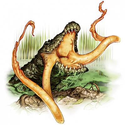 18 Aprile 201312 anni Autore comment_834055 Non puoi fare a meno di essere sorpreso dal colpo d'occhio di Rob: non lo avresti certo creduto un tipo dallo sguardo fino. Effettivamente la chiazza di vegetazione, quando la zattera si trova a circa una decina di metri, inizia a scivolare silenziosamente lungo l'acqua, verso di voi. "Ah! Ci siamo!" dice il barcaiolo, mentre tu scocchi subito la prima freccia. Il proiettile sibila nell'aria e colpisce la chiazza erbosa, la quale si inabissa subito portandosi dietro freccia e tutto. Rimanete in attesa per diversi secondi, nel silenzio più assoluto. Poi, ad un tratto... ...una enorme esplosione d'acqua solleva onde e schizzi ovunque, annebbiandoti lo sguardo per un secondo. Quando riesci a schiarirti la vista, vedi di fronte a te una creatura gigantesca: il più colossale coccodrillo che tu abbia mai visto! Sarà lungo più di sei metri, a giudicare dalle dimensioni di testa e zampe anteriori! Ma ancora più incredibile - e agghiacciante - è l'interno della bocca zannuta: quando la spalanca, tra le file e file di zanne acuminate, puoi facilmente intravedere non una ma bensì tre lingue tentacolari, spesse come il braccio di un uomo adulto, che immediatamente saettano verso la zattera afferrandone una estremità con forza. "Cercherà di farci affondare! Rendiamogli le cose difficili, compare!" esclama Rob (ridendo...? Ma è pazzo?), mentre afferra un arpione e si prepara a scagliarlo. Segnala
