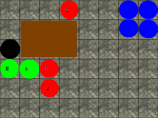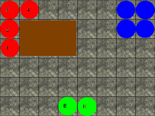12 Giugno 201312 anni Autore comment_851650 Spoiler: prova di forza combinata:successo Dopo una rapida consultazione sulla porta da sfondare entrambi partite alla carica:l'urto con il legno è cosi violento che dopo aver scardinato la porta vi ritrovate con la faccia sul pavimento.Velocemente vi rialzate:davanti a voi in una piccola stanza(6x8) ci sono da un lato 4 sacerdoti sul pavimento imbavagliati e legati dall'altro seduti ad un tavolo con delle carte da gioco 5 uomini a bocca aperta per il vostro arrivo.E' proprio uno di essi(probabilmente il capo) a prendere la parola prima che voi possiate dire una qualsiasi altra cosa:Benvenuti avventurieri vi stavamo aspettando anche se non speravamo certo in un'entrata cosi spettacolare! Ma non vedo la ragazza!Dove l'avete lasciata?Se ce la consegnate senza storie vi posso dare la mia parola che voi non avrete grane di nessun genere. Spoiler: mi dispiace per la mappa cosi brutta ma non ho trovato programmi migliori...Per l'indicazione dei quadretti,il lato più corto si misura a lettere a partire dall'alto mentre quello più lungo in numeri a partire da destra.Per esempio ora Ector si trova in f4 Segnala