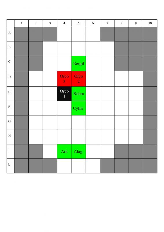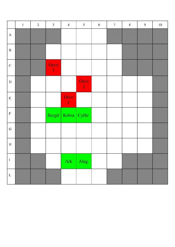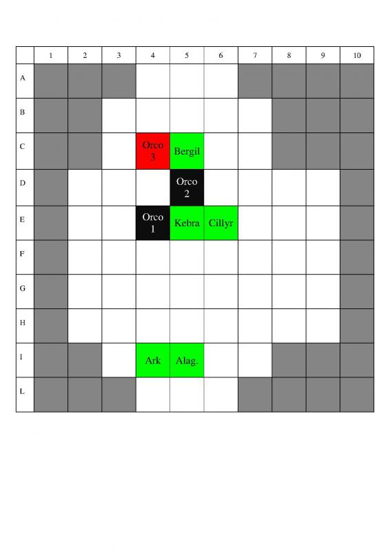 29 Settembre 201312 anni Autore comment_881058 @Ector Spoiler: In fretta riprendete la corsa lasciandovi alle spalle il piccolo goblin ucciso.Dopo pochi minuti a ritmo sostenuto vi imbattete nuovamente in dei cadaveri sul sentiero:stavolta si tratta di uomini e puoi riconoscerli come gli stessi che poco tempo fa avevano aggredito te e Kebrah.Tutt'intorno potete vedere delle tracce che tuttavia prendono direzioni diverse.Una pista si dirige verso nord-est,un'altra verso ovest e una terza a nord.Penso che la cosa migliore da fare sia quella di dividersi.-propone Lossodan Round di sorpresa @Bergil Spoiler: TxC vs orco 1:colpito TxD:10 @Cyllir Spoiler: TxC vs orco 1:colpito TxD:8 @Kebrah Spoiler: TxC vs orco 1:mancato @Alagos Spoiler: TxC vs orco 1:colpito TxD:16 orco 1 attacca orco 2:TxC:mancato @Ark Spoiler: Colpi gemelli vs orco 2.Primo TxC:mancato Secondo TxC:colpito TxD:4 Attendete ancora qualche istante, quando non si sentono più i passi dei nemici che hanno sceso le scale e poi irrompete insieme nella stanza.Il vostro improvviso arrivo coglie completamente di sorpresa i tre orchi presenti all'ingresso della caverna,che erano intenti a spartirsi gli oggetti trovati addosso ai corpi degli uomini uccisi prima.I vostri attacchi vanno quasi tutti a segno e tempestano in particolare il nemico più vicino. PF: Orco 1 -34 Orco 2 -4 Orco 3 Iniziativa: Cyllir Alagos Kebrah Bergil Ark Nemici Segnala