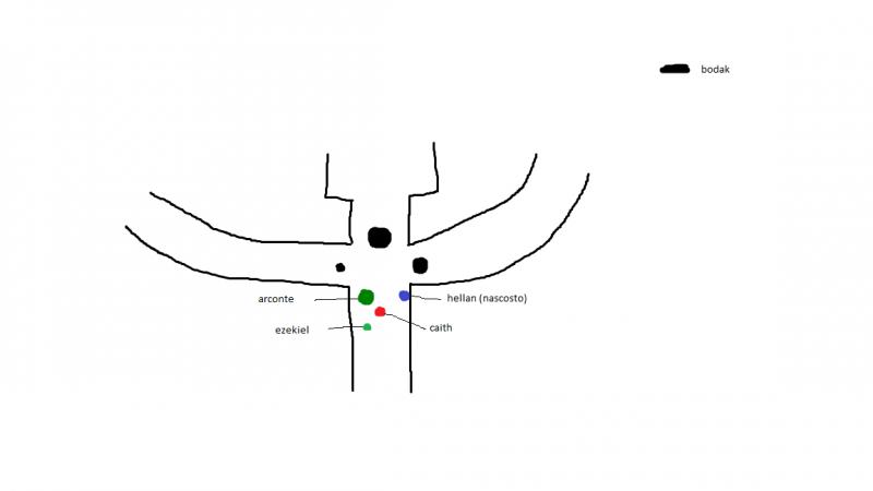 7 Novembre 201410 anni Autore comment_1002100 @Hellan e Ezekiel Spoiler: @Hellan Spoiler: nascondersi: 13+23=36 quando Ezekiel pone la domanda all'essere, subito dopo aver evocato una creatura celeste dai tratti lupini, il mostro si rivolge a voi con una voce profonda e cavernosa, ma al contempo passa e sibilante, che rende la sua figura ancora più inquietante odio gli umani... odio i vivi... odio odio odio odio odio odio la creatura in questo momento comincia lentamente ad avvicinarsi, sussurrando in continuazione il suo odio per la vita. quando è abbastanza vicino lo riconoscete come un Bodak: un temibile non morto umanoide proveniente dagli Infiniti strati dell'Abisso. Ha la testa a forma di teschio ma dalla forma allungata, senza naso; la pelle è grigia e glabra. È costituita dai resti di chi è stato corrotto dal male assoluto. da quello che sapevate però i Bodak non infestano il piano materiale, e soprattutto non dovrebbero esserci Bodak grossi come questo. Infatti il mostro raggiunge ampiamente il soffitto della caverna con la sua testa. Caith da vicino a voi arretra di un passo e sussurra questo non mi piace... cerco di richiamare Dahaka appena dice questo altri due bodak sbucano dalla vostra destra e dalla vostra sinistra. uno è a dimensioni umane, e l'altro è più piccolo, come uno gnomo, ma in qualche modo quello più grande sembra essere il loro "capo". nel vedere altri due mostri il magus si rivolge a voi Non incontrate il loro sguardo! se vi risucchiano l'anima vi trasformerete in mostri come loro! ma dove è andato Hellan? intanto l'arconte si mette in posizione difensiva a protezione del suo evocatore @iniziativa Spoiler: Caith Hellan Ezekiel Arconte Bodak grande Bodak piccolo Bodak ------------- Caith passa il turno per cercare di evocare la sua spada scusate se la mappina fa schifo @Leon Spoiler: Erath sembra non comprendere la tua domanda, ma ti risponde tranquillamente mentre prosegue intendevo dire che ogni tanto i maghi lo fanno... ci sarebbe potuto essere un trucchetto di psicologia inversa in quel punto quando invece arrivate vicino ai giganti vi fermate entrambi e cominciate ad analizzare i possibili nemici @Leon Spoiler: conoscenze religioni: 13+7=20 conoscenze arcane: 14+15=29 quei mostri sono dei Darakhul, un tipo di non morto che dopo la morte a causa di una particolare malattia, ritorna dalla tomba in una forma simile a quella dei ghoul, quindi con pelle cadente, calvi e affamati di carne vivente, ma che mantengono la loro intelligenza e capacità di ragionamento. unita al fatto che questi sono dei giganti la cosa li rende molto più pericolosi di un normale non-morto. questi morti, data la loro "intelligenza" si considerano superiori a tutti i viventi, che considerano come cibo/schiavi a seconda dei casi. non sono formidabili combattenti, ma la loro forza è notevole e una loro ferita non è da sottovalutare. Erath sentendo la tua domanda rimugina un pò e in pratica ti racconta quello che già sai, più il fatto che il veleno che trasforma in Darakhul viene trasmesso attraverso il morso. state osservando le creature quando all'improvviso vedete che vi stanno osservando e sorridono, per poi rivolgersi a voi perchè non vi avvicinate? avevamo giusto voglia di uno spuntino! gli altri due giganti ridacchiano e vi guardano imbracciando le loro armi, anche se sembrano stare piuttosto stretti, così quello in mezzo rinuncia ad imbracciare armi e ghigna, sfoderando zanne marce e artigli luridi @iniziativa Spoiler: Leon Erath Giganti Darakhul scusate se l'immagine è un pò penosa XD @Yin-Kuo Spoiler: leggi l'ultimo spoiler dedicato a L e decidi come agire. puoi presentarti a tutti con uno spoiler @tutti, e per adesso scrivi sotto spoiler rivolto a me. facevi parte del gruppo da quando sono arrivati al continente, ed è anche grazie a te che sono riusciti ad orientarsi. Segnala