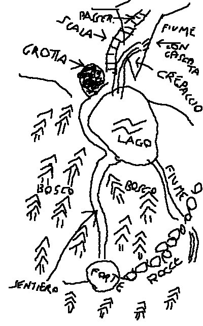 13 Settembre 201411 anni Autore comment_982585 L'orco guarda la penna e il calamaio e fa una faccia del tipo "e questa roba cos'è?" Poi si gira e disegna sul terreno sabbioso dell'accampamento una specie di mappa. "Il sentiero che vedete qui fuori porta direttamente verso la base della parte rocciosa delle montagne. Altro qui intorno non c'è. In quel punto vi è un piccolo laghetto, alimentato dal torrente nel crepaccio che vi fa cadere l'acqua con una cascatella. Di lato vi è l'ingresso della grotta, e poco più in là una scalinata in legno che permette di raggiungere le passerelle. L'ingresso della grotta è sempre sorvegliato, per cui se volete vi accompagno, ma non combatterò al vostro fianco." L'orco si mette a fare un disegno stilizzato, senza proporzioni ma che vi spiega meglio delle sue parole. Segnala