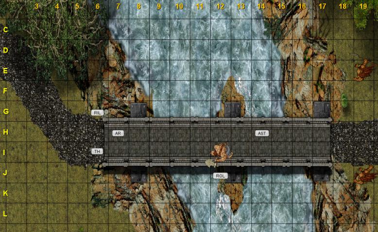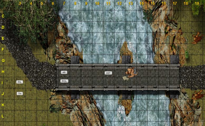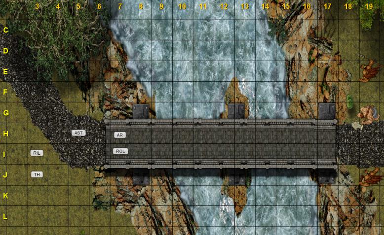 16 Novembre 201410 anni Autore comment_1005255 Seguendo il piano stabilito avanzate mandando avanti i combattenti:quando questi ultimi muovono i primi passi sul ponte di pietra improvvisamente dalla boscaglia sull'altra riva escono rapidamente tre mezzorchi,i primi due armati di giavellotto,il secondo più massiccio con una grossa ascia,che credendo di cogliervi impreparati trovano in realtà la vostra immediata reazione. @iniziativa Spoiler: Thorn 27 Asteron 24 mezzorchi con giavellotto 23 mezzorco con ascia 22 Arannis 21 Rillian 18 Rol'Kel Dur 15 @mappa Spoiler: Segnala