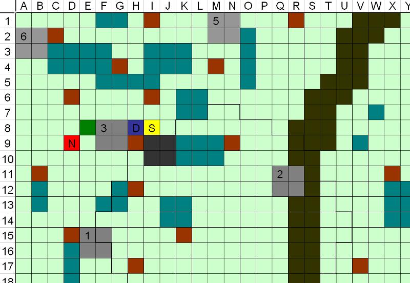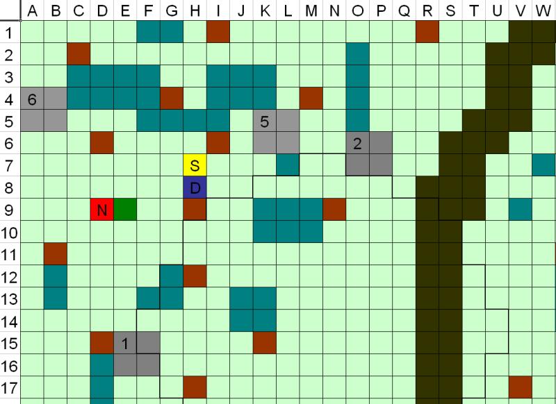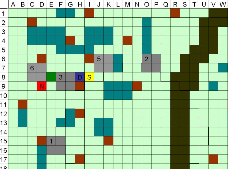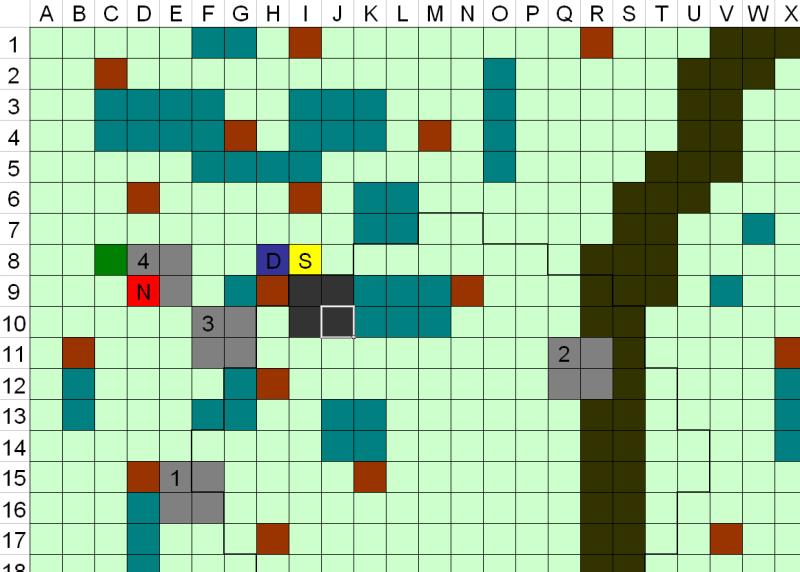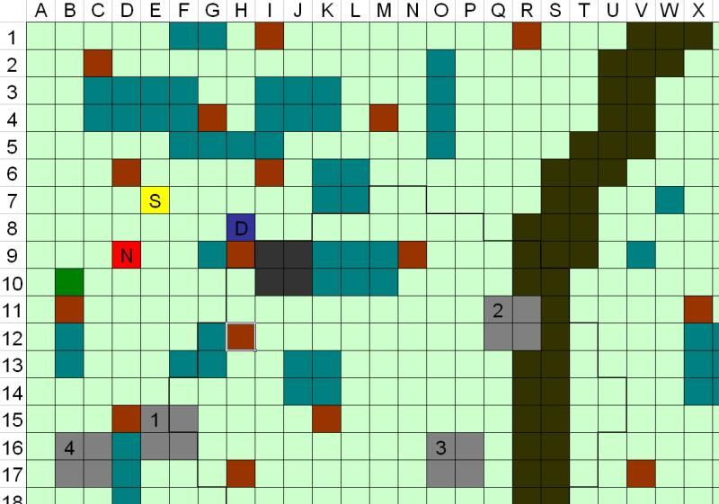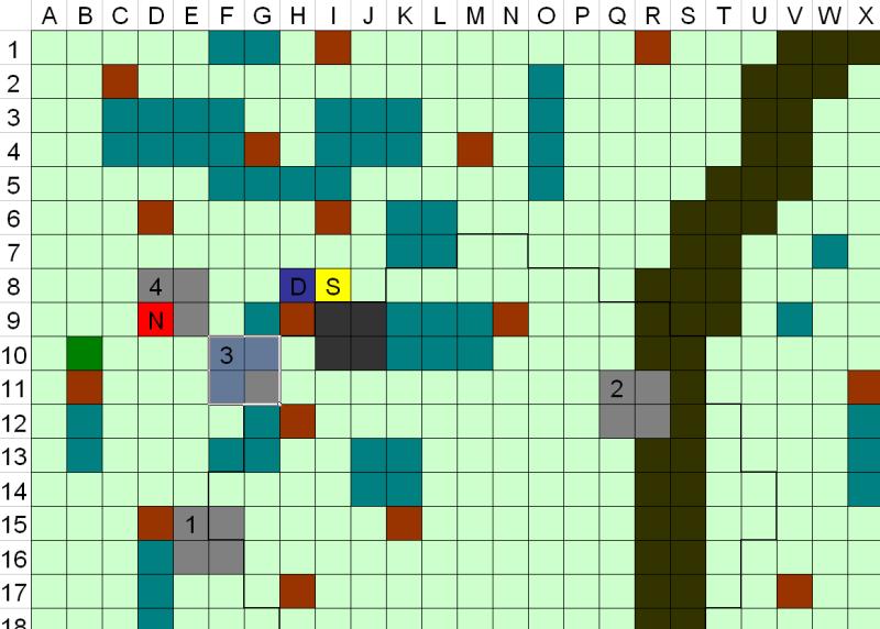 1 Marzo 201510 anni Autore comment_1043952 mappa Spoiler: D=Drake N= Norven (a 2 metri d'altezza) S=Sparkin Compagno animale= casella verde scuro E8 Lupi= caselle grigie, taglia Grande Capobranco= caselle grigio scuro Lupi 5 e 6 appena arrivati Caselle marroni= alberi di grandi dimensioni, copertura a chiunque si rifugi dietro Caselle verde acqua= Rovi, terreno difficile, velocità dimezzata (non si può caricare) Area dentro i margini in grassetto sotto l'effetto di Intralciare Segnala