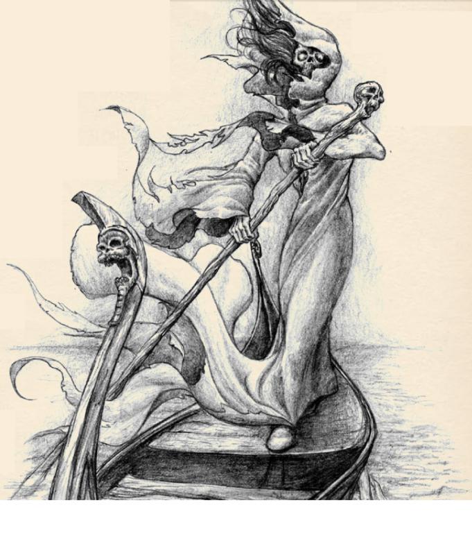 24 Aprile 201510 anni Autore comment_1065803 Dopo aver deciso la strada da percorrere riprendete la marcia. Non vi ci vuole molto a giungere sulle sponde del fiume nero e tortuoso largo oltre 100 metri e che si perde a vista d'occhio nel suo scorrere. L'attesa di un traghettatore però è molto più lunga, di fatti restate lì a non far nulla per circa 3 ore, prima che una chiatta, abbastanza grande, approdi vicino a voi. Su di essa una figura con una tunica lacera e grigia impugna un remo di legno nero. Il volto semi nascosto è magro ed emaciato, più simile ad uno scheletro che ad un vivente. La creatura non parla, ma sentite le sue parole nelle vostre menti. "Chi dall'altra parte vuole andare, almeno cento pezzi d'oro mi deve dare." Segnala