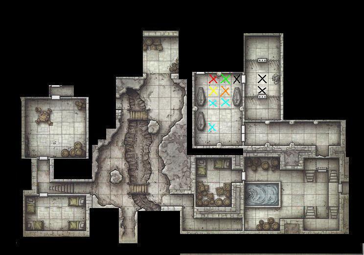 24 Gennaio 20169 anni Autore comment_1163223 Quando avanzate nella stanza, gli scheletri si fanno da parte come per farvi passare. Nonostante le loro armi abbassate, percepite un brivido mentre camminate in mezzo ai non morti: le loro orbite vuote sembrano guardarvi con brama e malignità. Arrivati davanti alla porta, Durkag si mette di lato e la apre, in modo che il prigioniero sia proprio davanti all'entrata. La stanza davanti a voi è divisa in tre aree: quelle a nord e a sud sono delimitate da sbarre di ferro, e formano le celle dei prigionieri. Nella zona in mezzo si trovano due banditi, che si girano di scatto quando la porta viene aperta. Finalmente il cambio, pensavamo... il bandito si interrompe quando vede il suo compagno legato. Il suo sguardo passa a esaminare voi e le vostre armi sguainate. I due banditi impugnano le loro spade: cosa sta succedendo qui? chiedono in tono ostile. Spoiler Nella cella a nord si trova un ragazzino, mentre nella cella a sud ci sono due donne. I prigionieri indossano delle logore tuniche grigie. In un lato della stanza si trova una pila di abiti abbandonati. Nel caso voleste combattere: Spoiler Iniziativa/Danni Albus <- Samuel 9 Durkag 11 Aradia 14 Redbrand Postate tutti. X gialla: Albus X rossa: Aradia X verde: Durkag X arancione: Samuel X azzurre: scheletri X nere: redbrand Segnala