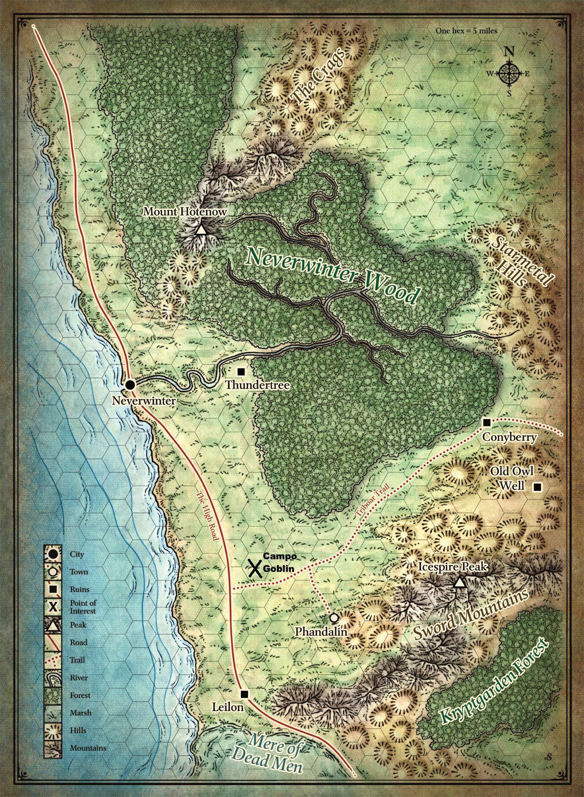 5 Febbraio 20169 anni Autore comment_1167732 In 4/2/2016 at 10:40 , Hennet87 ha scritto: Provare? Verso dove? Abbiamo un paio di posti da poter visitare, ma nessuno di questi ha a che fare con il Castello, o perlomeno così ci pare. Andiamo a caso? Bè, se non ricordo male uno dei goblin ci aveva dato delle indicazioni... risponde pensieroso Sildar. "Circa venti miglia a nord-est dell'avamposto, nel bosco Neverwinter". Non è molto preciso ma dovrebbe trovarsi all'incirca qui aggiunge indicando la punta meridionale del Bosco. L'unica cosa che mi viene in mente è recarsi qui e controllare un po' in giro. In fondo un castello non può certo volatilizzarsi nel nulla! Segnala