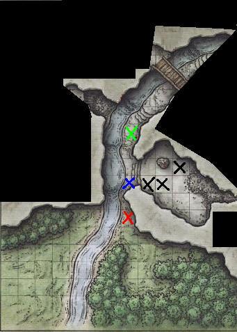 8 Ottobre 201510 anni Autore comment_1124533 Aradia e Durkag avanzano di qualche passo, affacciandosi alla stanza in cui sentite abbaiare. Qui scoprite che non si tratta di cani, bensì di tre lupi: le bestie sono incatenate ad una stalagmite e ad un anello fissato nel muro. Non possono raggiungervi, ma appena fiutano il vostro odore si fiondano verso di voi ringhiando furiosamente, tendendo le catene. La stanza è umida e puzzolente: feci e resti di cibo ricoprono il pavimento. Nella parte più a est della stanza notate una stretta apertura nel muro, una sorta di camino naturale che risale verso l'alto. Alla base dell'apertura si trova un cumulo di immondizia, probabilmente proveniente dall'altro lato del cunicolo. Il passaggio principale della grotta sale ripido verso nord, seguendo il corso d'acqua che scorrendo spruzza le rocce adiacenti. Dall'altro lato del fiumiciattolo, un passaggio laterale sembra condurre verso ovest. Il fiume e le macerie che vedete in mappa sono da considerare terreno difficile.Chi non ha scurovisione non riesce a vedere oltre 6 metri dall'ingresso.X rossa: Albus e SamuelX blu: Aradia e DurkagX nere: lupi Modificato 8 Ottobre 201510 anni da Hicks Segnala