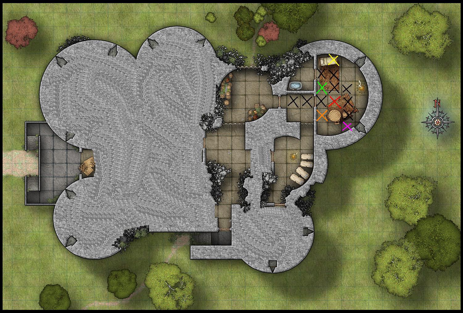 1 Marzo 20169 anni Autore comment_1176717 Durkag colpisce il goblin davanti a sé in pieno petto, aprendogli il torace in due con la sua ascia; i goblin reagiscono contrattaccando e un affondo di spada arriva a colpire il mezzorco al braccio. Albus riesce ad evitare gli attacchi nemici, e invocando dei raggi di energia riesce a colpire due goblin, uccidendone uno e lasciando l'altro in fin di vita. Samuel arretra per difendere Grunden, ma il suo colpo non va a segno; in compenso, Aradia attacca alle spalle il goblin che minacciava il nano, perforandogli il cuore. I goblin reagiscono con furia alla morte dei loro compagni, ma l'elfa e il paladino riescono a parare tutti gli attacchi. Nel frattempo, nuovi rumori, grida e ordini provengono dalla stanza a ovest. Iniziativa/Danni Spoiler Samuel 18 Grunden 5 Aradia 7 Goblin1 6 Goblin... Durkag 17 <- Albus Postate tutti. X gialla: Albus X rossa: Aradia X verde: Durkag X arancione: Samuel x nere: goblin Spoiler Flashback: Durkag beve la pozione di Albus e si cura di 7pf. Durkag attacca Goblin, 11 danni, MORTO. Albus lancia Dardo Incantato, 6 danni, 7 danni, MORTO. Samuel attacca Goblin, mancato. Grunden usa Schivare. Aradia attacca Goblin e si sposta, 14 danni, MORTO. Goblin 1 e 2 attaccano Albus, mancato. Goblin 3 e 4 attaccano Durkag, 7 danni (17 TOT). Goblin 5 attacca Aradia, mancato. Goblin 6 attacca Samuel, mancato. Si, ha colpito 1 goblin su 6... Modificato 1 Marzo 20169 anni da Hicks pf Durkag Segnala