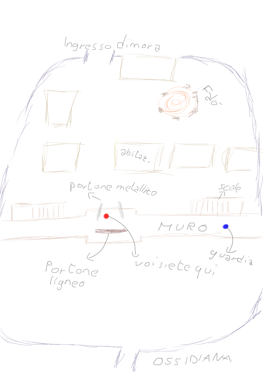27 Aprile 20169 anni Autore comment_1197358 "Non so se sia la scelta migliore, ma di sicuro non ho in mente nulla di meglio, muoviamoci!" più che dubitare della tua idea sembra rimpiangere il fatto di non avertelo consigliato lui. Pronunci alcune parole arcane ed esegui alla perfezione i gesti come te li aveva insegnati in passato Pachu'a e subito dopo comincia a sparire. Percorre rapidamente lo spazio che lo divide dal muro e, sebbene faccia un po' di rumore, le guardie non sembrano notarlo, forse grazie al tuo incantesimo, forse grazie anche alla loro distrazione. L'eidolon scende con altrettanta facilità dalla parte opposta del muro e da lì riesce a scorgere diverse persone parlare attorno ad un falò, mentre altre due si stanno scontrando a duello, probabilmente un allenamento, perché i loro colpi sono particolarmente trattenuti. Senza pensarci due volte scivola inosservato verso il portone, dove trova un solo, ma pesante, trave di legno a sprangare l'entrata, anche se tutto attorno vi sono altri sistemi più efficienti per bloccare l'entrata, tra cui un secondo portale completamente in metallo, con particolari decorazioni incise sopra. Pachu'a grazie alla sua forza fa scorrere il blocco senza problemi e da una piccola spinta al portone per assicurarsi dell'efficacia della sua manovra. Le due pesanti ante sembrano aprirsi e senza emettere suoni particolarmente forti, aprirlo non dovrebbe essere un problema. L'eidolon si guarda a destra e a sinistra, dove si trovano le due guardie di vedetta, avanzano costantemente avanti e indietro senza mai incontrarsi, il che rende difficile il proseguimento del piano, ma non avendo nulla di meglio si fa avanti Orian con un sorriso compiaciuto: "Mi permetta un attimo." si stringe nel mantello e prosegue diritto davanti a te verso il cancello. Dopo i primi passi perdi completamente la percezione del rumore dei suoi stivali e dopo a malapena un paio di metri lo perdi completamente di vista, lo noti soltanto una volta che si trova al fianco dell'entrata mentre ti fa cenno di far muovere Pachu'a verso l'uomo alla tua destra per distrarlo. Scopare di nuovo alla vista attraversando l'angusta entrata. Attendi ancora alcuni secondi quando ad un tratto vedi la guardia dove si trovava il tuo eidolon, l'uomo, voltarsi come per cercare qualcosa, mentre la tiefling dopo esersi girata di scatto lentamente si adagia sul pavimento. Sai che quello è il momento giusto per agire e seppure con circospezione ti muovi più rapidamente possibile verso l'entrata, e solo per una vera e propria svista dell'uomo di guardia non riesce a notarti. Quando ti trovi dall'altra parte delle pesanti ante in legno vedi giungere Orian che trascina il corpo della giovane donna. Non vedi ferite evidenti sul suo corpo e in effetti si sembra che respiri ancora, probabilmente è solo addormentata. Dopo un momento senti Pachu'a avvicinarsi, che sebbene invisibile produce ancora un certo rumore. Il capitano prende la parola, sebbene a bassa voce: "Diamine, sono inciampato all'ultimo scalino, per poco questa brigante non mi beccava! Ho dovuto eliminarla in qualche modo prima di proseguire, anzi, ora dobbiamo incaricarci anche della seconda guardia: se questa manca per qualche momento non se ne accorgerà, ma se non si presenta più tra non molto darà l'allarme. Lascio a te il compito, io devo far sì che questa non chiami aiuto tanto in fretta, si sveglierà tra non molto, e già che sali sul muro guarda la disposizione del campo e dimmi dove passare." detto questo lo vedi prendere una corda e un bavaglio dalla piccola borsa a tracolla che porta con se e si mette a legare con una certa maestria il corpo inerme. Spoiler Furtività Pachu'a: 9 (1d20) +20 (furtività) = 29 Furtività Orian: 16 (1d20) + ... (non ti scrivo il risultato perché teoricamente non conosci i modificatori, ma hai notato che non è invisibile) / 5 (1d20) + ... (secondo tiro) Furtività Naida: 14 (1d20) - 5 (movimento pieno) = 9 (permettimi, ma hai avuto una fortuna enorme, gli bastava fare 3 per beccarti! ahahah) Il portone e la muraglia si trovano a poco più di una quindicina di metri, non è necessario far perdere pf all'eidolon, per questo ho scritto senza chiederti conferme. Puoi anche evitare di eliminare la seconda guardia, con tutte le conseguenze del caso, e far leva sulla velocità d'azione. Da quello che vedi per raggiungere il muro di ossidiana dietro al campo ci sono due vie, una è passare nei pressi della zona dove si trova il fuoco e gli altri pirati che parlano, l'altro passaggio è dietro le abitazioni che circondano quella che sembra essere la piazza dove si tengono gli addestramenti. Sono edifici bassi fatti per lo più di legno o altri materiali scadenti, alcuni sembrano fatti con mattoni di fango e paglia, ma tutte sono tenute in buono stato. Il vantaggio di passare dietro agli edifici è che la luce dei falò non vi raggiunge se non per brevi tratti e siete più lontani dagli uomini, tento di farti un rapido schizzo. Ok, è venuta una cosa terrificante, ma non importa, è uno schizzo assolutamente non in scala, ma ti da idea della disposizione delle cose... Spero. Segnala