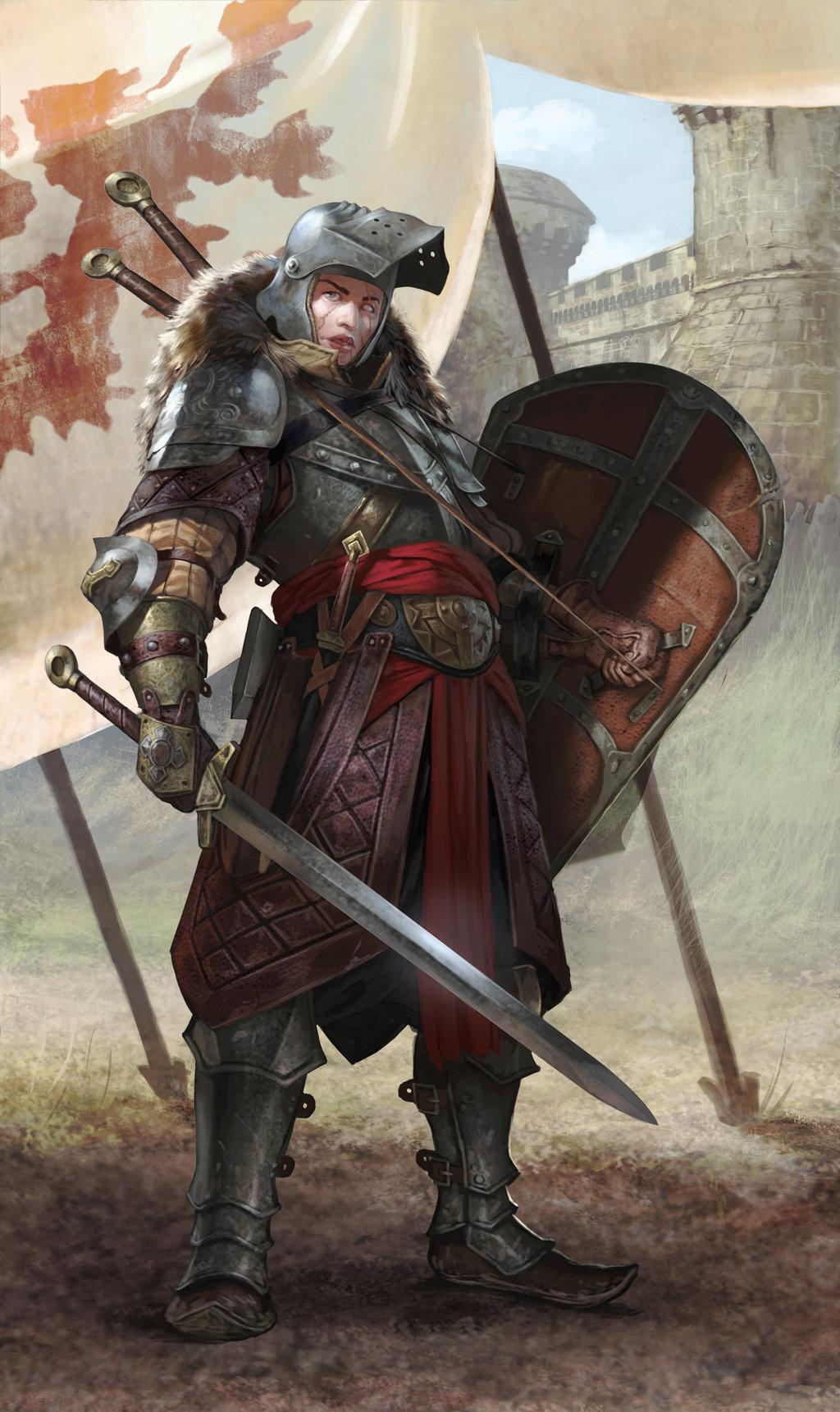 Pubblicato 27 Aprile 20169 anni comment_1197081 1 MARZO 350 PI (post invasione) 9 mattina Inizia la primavera nei Regni e come ogni primavera è il periodo migliore per fare guerra. L'inverno ha fatto riposare le truppe e l'acqua si trova abbondante con il disgelo. Questo è il periodo migliore per trovare ingaggio se si vuole essere sicuri della paga anche visto che chi primo arriva meglio alloggia per bottini e compensi in questi momenti. La compagnia del Sole nEro è una compagnia mercenaria decisamente grande, creata dall'unione di due compagnie in una. C'è poco da andare leggeri con loro e loro non andranno leggeri con te. Voi siete proprio in cerca di un lavoro in questo momento. L'inverno è stato duro visto che lavoro non ce n'era,ma è servito a rifornire le scorte e rimpiazzare gli uomini che non hanno rifirmato il contratto. Ora rimane solo da trovare un contratto e il posto migliroe dove andare probabilmente è alla taverna e sperare di trovare qualche informazione da mercanti e viaggiatori e leggere tra le righe dove ci potrebbe essere bisogno NOTA : ora siete tutti a Reams. Inserite una descrizione sotto spoiler nel primo post e mettete il nome del personaggio in grassetto prima di oni post. se riuscite parlate al presente in prima persona. Grassetto parlato,blu/blu corsivo pensiero,rosso documenti scritti. terrò conto dei giorni e gli segnerò come vedete sopra(ho messo anche l'ora stavolta,ma non la metterò sempre) per farvi capire quanto manca a pagare e anche per regolarvi in caso di spostamenti Mesi e Stagioni Spoiler Per semplicità : Inverno=Dicembre,Gennaio,Febbraio (ogni land riduce mantenimento di 1d4*5% in quest periodo) Primavera=Marzo,Aprile,Maggio (ogni land riduce mantenimento di 1d8*10% in quest periodo) Estate=Giugno,Luglio,Agosto (ogni land riduce mantenimento di 2d10*10% in quest periodo) Autunno=Settembre,Ottobre,Novembre (ogni land riduce mantenimento di 1d6*10% in quest periodo) Nemici(per ora poi potranno divenire fino a 4) Spoiler Marco Tantivelli= Capo della casata dei Tantivelli,una delle più influenti casate mercantili risiedenti nelle Renar Highlands con commerci in tutti i Regni. Marco ha da sempre un odio per qualsiasi compagnia mercenaria visto che spesso hanno depredato suoi trasporti. Marco ha negato a tutti i suoi mercanti di fare affari con mercenari o simili e visto che ha il monopolio sulle produzioni di armi delle Renar Highlands questo significa che le compagnie mercenarie avranno molta fatica a procurarsi le armi di magnifica fattura prodotte lì. Compagnia del Marchio Nero= La compagnia del Marchio Nero è una compagnia mercenaria governata con pugno di ferro da Ser Mydas, autoproclamatosi Voce di Jupiter. è una compagnia fanatica religiosa che mal vede chiunque si venda per denaro. I membri entrano con voto di servizio fino alla morte e sono marchiati al braccio con il simbolo della compagnia : Un Sole Nero grande come tutta la spalla Combattimento Spoiler ogni pg ha una soglia di danni DT pari al livello +Costituzione(non modificatore,ma costituzione proprio) quindi un pg di 10° con 16 costituzione ha DT 26, se venite colpiti durante un round di sopresa o un colpo vi infligge danni letali superiori alla DT dovete effettuare un test di Tempra con CD 10+1/5 danni. Se riesce non succede nulla, se fallite di 5 o meno andate a 0 e siete Disable, se fallite di 6 o più siete a 0 e siete svenuti e Dying Non si scende sotto gli 0 pf qui,ma ogni danno quando a 0 si subisce alla Costituzione e vi lascia svenuti e Dying, Se la vostra costituzione raggiunge lo 0 siete morti Se non c'è stato un round di sorpresa si effettua un tiro per determinare chi ha il Vantaggio(se c'è stato round sopresa la parte che ha sorpreso ha il vantaggio). Il vantaaggio permette a un membro del gruppo che lo ha di tirare 2d20 e scegliere il migliore(da dichiarare prima di tirare),ma poi a fine round si ritira Iniziativa e anche Vantaggio. La prova di vantaggio è una prova contrapposta tra due membri dei gruppi in scontro in Profession(soldier) o un tiro di Saggezza Un personaggio Dying(sanguinante)ogni turno deve effetture un TS tempra pari a 10+1 per ogni turno Dying con il suo attuale valore di Costituzione per non morire,se ha successo meno di 5 non muore,ma non migliora,se ha successo di 5o più ,ma meno di 10 si stabilizza,ma rimane svenuto,se ha successo di 10 o più è coscente,ma Disable Una persona può stabilizzare un altra con una prova di Guarire CD 15 che genera attacchi di opportunità. Un PG può usare un punto azione(vedi dopo) per stabilizzarsi automaticamente(rpima di tirare il TS tempra del turno) Disable un personaggio disable è a 0 pf ma cosciente,può fare solo un azione standard o di movimento(a metà velocità) per turno. Se effettua un azione standard o effettua azioni stressanti(tranne muoversi) perde 1 punto costituzione e finisce incoscente e Dying se i suoi pf non risuperano gli 0 grazie a questa azione. Se subisce danni non letali questi superano autamticamente i pf del personaggio e finisce svenuto. Si guariscono i danni alla normale velcità di cura Stable n personaggio stabile è a 0 pf e svenuto. Ogni ora deve effettura un TS tempra pari a 10+1 ora dopo la prima per rimanere stabile e non andare a Dying. se ha successo meno di 5 non migliora, se ha successo di 5 o più diventa cosciente Altre persone possono assistere il malato curandolo 10 minuti ogni ora e supeando una prova di Guarire CD 15,questo garantirà un +2 al TS dell'assistito. quando un pg stabile comincia a guarire pf non rischia più di tornare Dying Guarire Ogni 8 ore di riposo un Pg guarisce di un numero di pf pari al suo livello e un eventuale punto danno ad ogni caratteristica,ogni interruzione durante la notte previene ciò Stare a letto tutto il giorno raddoppia questo valore(2 volte liv danni letali e 2 punti danno alle caratteristiche) I danni non letali guariscono dello stesso valore(liv PG) per ogni ora di riposo Alcune abilità,talenti e magie per