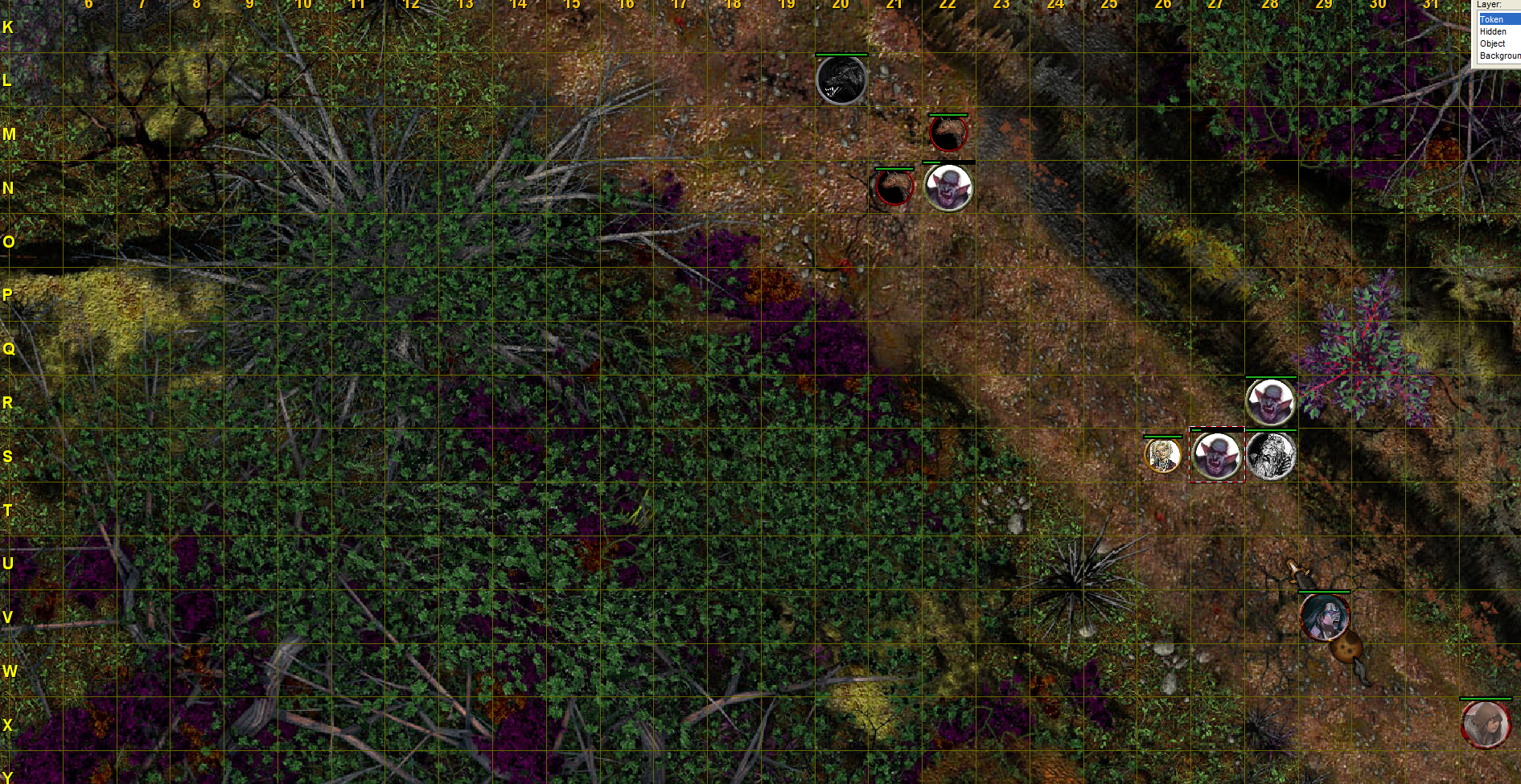 14 Giugno 20169 anni Autore comment_1214006 Mentre discutete sul da farsi, valutando le vostre alternative, vedete i cani abbandonare il loro balletto ed iniziare, quasi all'unisono, a ringhiare sommessamente puntando il fitto della foresta alla vostra destra, il pelo irto e i denti digrignati vi inducono a voltarvi in quella direzione, da dove, un istante dopo, l'ombra di una figura umanoide sbuca fuori, aprendosi la strada fra una massa di tenaci arbusti appuntiti, preceduto solo da quelli che sembrano improperi. Un'attimo di incertezza vi coglie, mentre cercate di mettere a fuoco la figura che si arresta di colpo sgranando gli occhi non appena vi vede."GANDUK!" X Milo Spoiler Il linguaggio è Goblin, si potrebbe tradurre con pellechiara, detto in senso dispregiativo! grida d'istinto, non appena si riprende dallo stupore. Percezione/Furtività Spoiler Gwil:Roll(1d20)+8=17+8, Total:25Milo: Roll(1d20)+6=9+6,Total:15Fundron Roll(1d20)+1=7+1, Total:8Duror: Roll(1d20)+1=14+1, Total:15 Hobgoblin: Furtività 1d20+5=8+5-2(sottobosco)=11 x Gwil Spoiler Ci sono altri rumori alle sue spalle, un debole bisbiglio che precede l'arrivo dell'hobgoblin e i deboli fruscii del sottobosco, ti dicono che di sicuro non è solo, ma in compagnia di uno o forse due compari, leggermente attardati. La tarchiata figura dalla pelle grigioverde e dalle orecchie appuntite, che riconoscete chi più chi meno come un Hobgoblin, rimane per un attimo di troppo interdetto dall'inaspettato incontro, dandovi il tempo di reagire quando vedete la sua mano portarsi all'elsa della spada e i suoi piccoli occhi attenti accendersi d'odio mentre si fissano su Duror. Vi basta un attimo per intuire il pericolo, solo Fundron costretto a tenere a bada il cavallo innervositosi, non è abbastanza pronto a cogliere la minaccia. Iniziativa Spoiler Iniziativa. Milo 14+4=18; Fundron=10+4=14 Gwil: 6+7=13 Duror 8+1 =9 Cani: 11 Hobgoblin: 8 Ordine di Iniziativa: Round di SorpresaMilo FundronGwil CaniDuror Hobgoblin Avete un round di sorpresa, tutti tranne Fundron potete compiere un'azione di movimento o una standard, prima di entrare nel round 1, in cui avrete di nuovo voi l'azione. Postate pure nell'ordine che preferite, penserò io a riordinare le azioni nel modo più conveniente. Mappa Spoiler Note Spoiler 1. Il sottobosco (dove si trova l'Hobgoblin), fornisce occultamento: 20% probabilità di mancare a causa degli arbusti.2. Attenti alle cavalcature che non sono addestrate al combattimento; combattere in sella richiede prove di cavalcare ed ha le sue regole.3. Le zone esterne alla strada sono considerate terreno difficile. Modificato 14 Giugno 20169 anni da DedeLord Segnala
