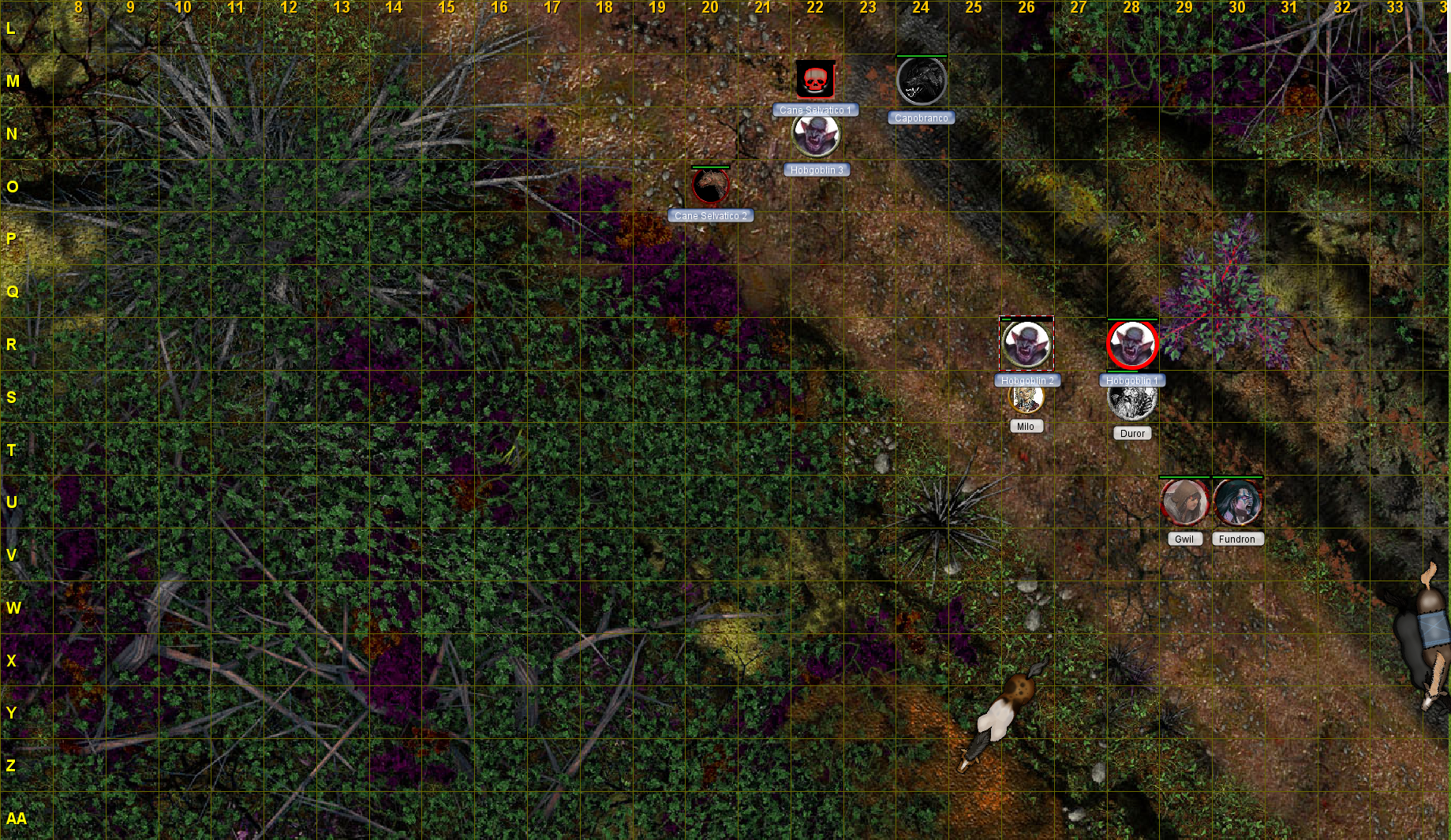 16 Giugno 20169 anni comment_1214802 Milo Cercando di soffocare una risata vedendo il brutto hobgoblin attaccato dai cani, Milo cerca di approfittare della situazione e scivola silenzioso fuori dagli arbusti, con il suo rapier in mano. Piano piano si avvicina a uno dei due nemici che stanno fronteggiando il nano, pronto a colpirlo dove meno se lo aspetta ... DM Spoiler Con un doppio movimento dovrei riuscire ad arrivare in R26 con un movimento a L Segnala