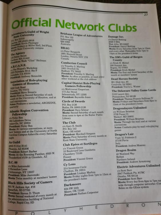 • pensando di farvi cosa gradita, vi allego la scansione della pagina di Polyhedron 69 di marzo 1992 ove risulta la Dragon's Lair tra i club ufficiali RPGA (terzultimo della pagina)