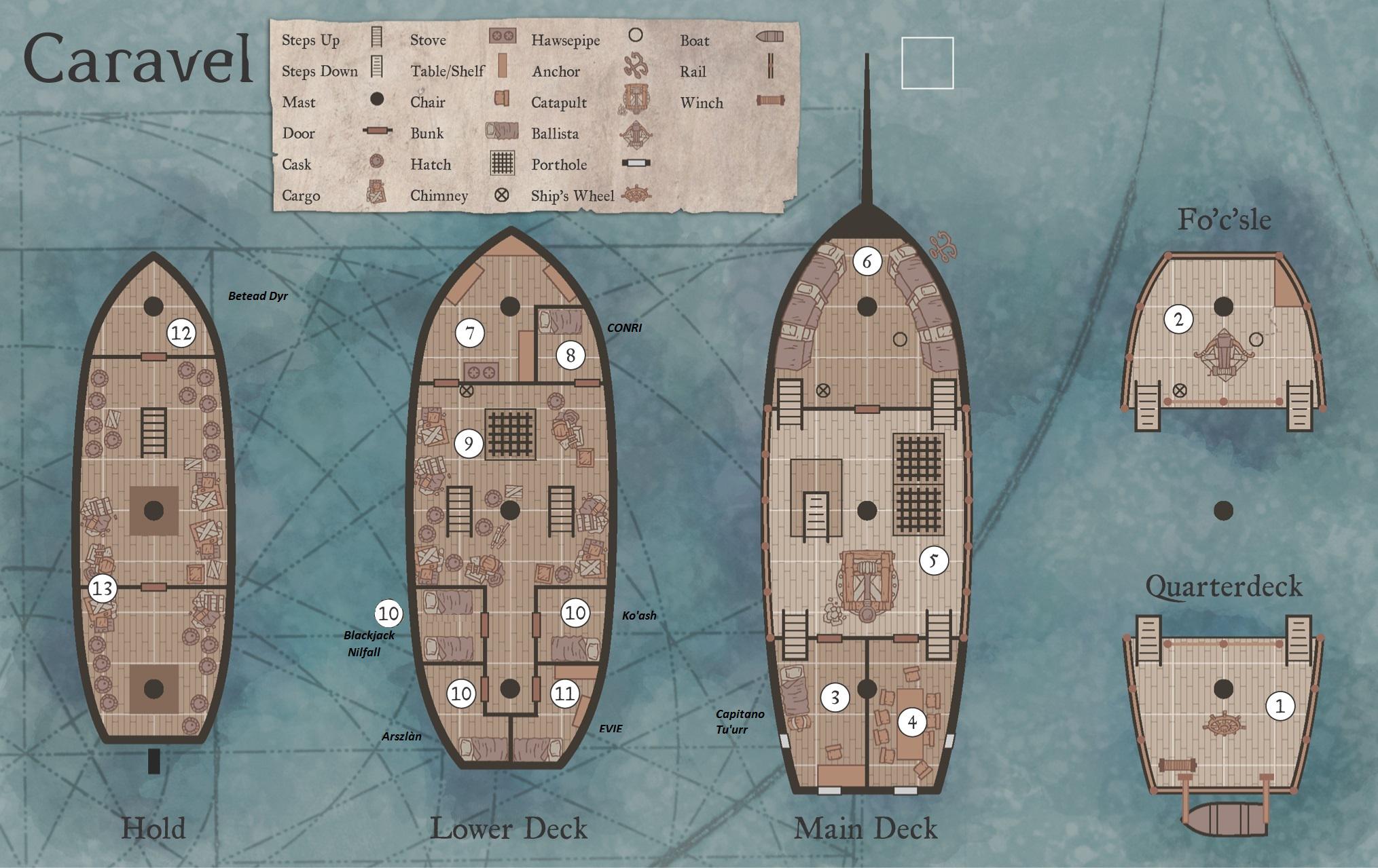 17 Luglio 20169 anni Autore comment_1227549 Spoiler Ecco le vostre disposizioni approssimative secondo le richieste. Ditemi se è ok per voi. Farei doppia la stanza in basso a sinistra, ma sono le 3 del mattino e nun ce la fo' mentalmente a connettere XD presto la sistemo. Una piccola descrizione dell'equipaggio: Il capitano Tu'urr è un grosso Tauren silenzioso ma scaltro e intelligente. Non è il primo per agilità sul ponte, ma la sua enorme stazza è rassicurante e la sua precisione e rigore marziale sono unici. Nella sua cabina è pieno di cartine con valanghe di appunti, secche segnate e sembrano vissute e raffinate negli anni. Sul ponte tutti gli portano estremo rispetto. I quattro catfolk sono tutti piu' o meno della stessa origine dal pelo e danno l'idea di essere un gruppo unito che lavora assieme da molto. Estremamente agili, non danno l'idea di essere dei grandi combattenti. I due dogfolk invece sono il contrario: piu' giovani, un po' meno esperti ma dal fisico possente. Gli uomini d'arme e fatica a bordo probabilmente, son loro che han portato la vostra cassa a bordo. Infine una Nyx: robusta nonostante tutto e di bell'aspetto. Un po' di cicatrici qua e la' non sembra seconda ai compagni. La discussione fra i compagni di avventura verteva intorno ad un importante punto chiave: se andare armati o no. Se affidarsi a fortuna e alla propria forza, o affidarsi alle deduzioni e allo studio sperando in una responso positivo dalla popolazione locale. Il gruppo per lo piu' fortemente scettico di fronte all'idea di spogliarsi delle proprie armi ed armature, preferisce seguire generalmente la via piu' cauta. Bene, non mi entusiasmava l'idea di andarci disarmati. Anche perchè non posso separarmi dalla mia spada. Piu' che altro, mi chiedo, sbarchiamo con la scialuppa immagino? La corrente è abbastanza forte intorno all'isola, ma forse con una scialuppa con un pescaggio scarso dovremmo farcela a passare. Betead Spoiler Osservando le nuvole in cielo deduci che il clima, come suggerito dal capitano, sia infatti favorevole per il viaggio: puoi stimare che il capitano abbia indovinato per quanto possibile le sue stime per le prossime 48h: vento verso est guardando le nuvole muoversi e tempo sereno. Tutti Spoiler Il vostro buon druido ha fatto una ricerca e vi comunico i risultati pure qua. La luna piena prendera' luogo fra 7 giorni (5 giorni dal giorno in cui dovreste raggiungere in serata l'isola) e dovrebbe durare 3 giorni. Segnala