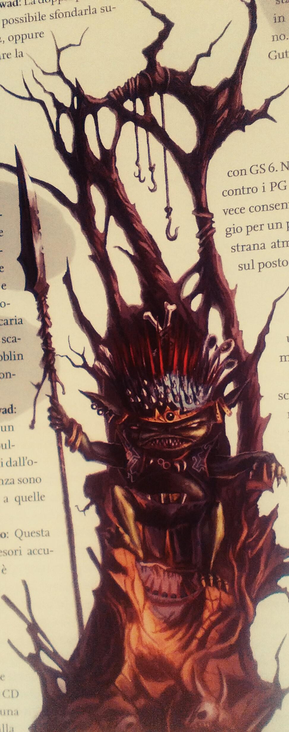 12 Novembre 20168 anni Autore comment_1273400 I goblin superstiti sono in condizioni pietose. Difficile salvarli. Mun tenta di aprire il portone ma non appena inizia a ruotarlo i cardini cedono e questa collassa verso l interno con un tonfo e scheggie di legno che volano ovunque. Facciascarabocchiata urla di paura. Il palazzo (in realtà niente più di una casa un pó più grande) è poco illuminato ma si riesce a vedere comunque tutta l unica grande stanza. Teste di cane e cavallo sono attaccate allle pareti con ganci arrugginiti. In fondo si alza un trono di legno con una scaletta incorporata su un lato. Sopra il capo Gutwad stà parlando con i suoi ultimi rimasti servitori. Stá impartendo ordini riguardo il lancio dei fuochi tramite una finestra al fine di " Far divertire il suo vasto popolo" ALTRI INVASORI? FATE FUOCO SU DI LORO! urla Gutwad. Non riuscite a capire quanti goblin vi siano realmente oltre a Gutwad. Sicuramente i due che stanno accendendo un fuoco. tutti Spoiler Inizia il combattimento. Prima agiscono i goblin poi voi. Preparare i fuochi è un azione standard quindi perdono il loro turno. Gutwad non fa altro che sbraitare. Tocca a voi tutti. Ecco la mappa Segnala