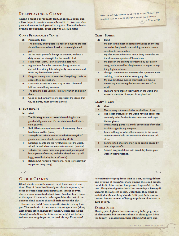 13 Ottobre 20169 anni comment_1261571 La WotC ha rilasciato la seconda anteprima di Volo's Guide to Monsters. Volo's Guide to Monsters è il prossimo manuale per D&D 5e, in uscita il 15 Novembre 2016. Al suo interno sarà possibile trovare nuove informazioni su alcuini dei mostri più iconici di D&D, nuove razze giocabili e le statistiche di un centinaio di nuovi mostri. In attesa della sua pubblicazione la Wizards ha deciso di mostrarci una seconda anteprima, questa volta incentrata sui consigli forniti al DM riguardo al modo in cui interpretare un Gigante in gioco: http://www.enworld.org/forum/attachment.php?attachmentid=77459&d=1476380194 Visualizza articolo completo Segnala