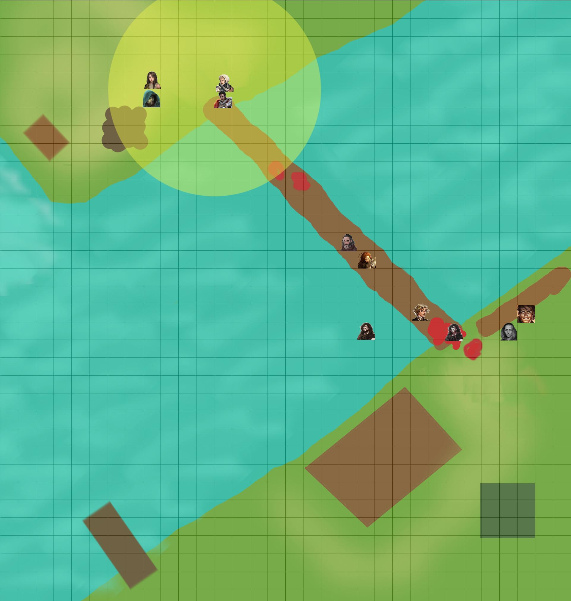 2 Febbraio 20178 anni comment_1303440 Mentre la Rossa, Svante e Nataniel attraversano il ponte, Raend cerca di convincere con le cattive il bandito al suo fianco che tutto è perduto e gli conviene mollare. Questo non sembra però farsi intimidire dalle parole e dai pugnali dell'avversario, o forse è solo disperato, sapendo che comunque vada per lui finirà male, e tenta quindi una mossa disperata: schiva agilmente l'assalto di Raend, badando solo a difendersi, e si getta nel fiume. Una freccia dell'attento Avindel lo raggiunge facendolo barcollare poco prima di entrare in acqua, ma il malvivente riesce a tuffarsi e comincia a nuotare a tutta, aiutato dalla corrente. @Fezza Spoiler Tanto questi mi fanno la pelle comunque, che ho da perdere. Ci vediamo all'inferno, bastàrdo. *Dadi* Spoiler Raend: intimidire vs bandito, fallito. Raend attacco preparato bandito2, fallito. Raend attacco opportunità bandito2, fallito. Avindel attacca bandito2, successo: 4 danni. Bandito 2, check di nuotare: riuscito. *Iniziativa e condizioni* Spoiler Banditi (1 e 3) - a terra Banditi (2) - copertura migliorata (+8 CA, +4 rif)Banditi (4) - copertura totale (nella casa).Aria - Jonathan - difesa totale, Power of FaithRaend - Nataniel - Power of FaithAvindel - Power of FaithJormand - Power of Faith, Hunter's bondSvante - Power of Faith, Scudo, Hunter's bond *Mappa* Spoiler Modificato 2 Febbraio 20178 anni da Dmitrij Segnala