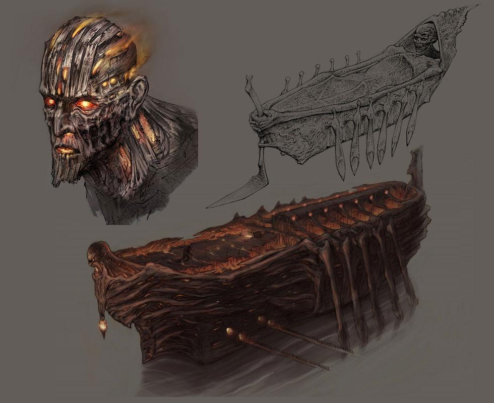 14 Marzo 20178 anni Autore comment_1320594 Tutti Spoiler Facciamo un piccolo salto indietro . All' entrata di Caronte L'enorme caverna sotterranea , composta di nera roccia vulcanica , viene illuminata debolmente sulla riva del fiume dalla flebile aurea delle anime . Improvvisamente la fonte di luce si incrementa all'entrata dell'imbarcazione. Il viso legnoso di quello che sembra essere un vecchio fa da polena alla nave . Il cuore del volto sembra essere formato da fuoco puro , fuoco che si intravede da piccoli spazi sul legno oscuro che compone il viso del vecchio . Dagli occhi le fiamme si estendono come 2 bracieri, senza però bruciare la creatura . Su tutto il bordo del ponte , lanterne , disposte in egual distanza , illuminano il fasciame della coperta . Legno nero demoniaco . Finalmente il demone attracca e le anime cominciano a prendere posto nella stiva del mostro . I grossi remi si trasformano in fruste , fustigando le anime per sollecitarle ad entrare più rapidamente . Le imprecazioni e maledizioni della demoniaca creatura si odono in butta la caverna Segnala